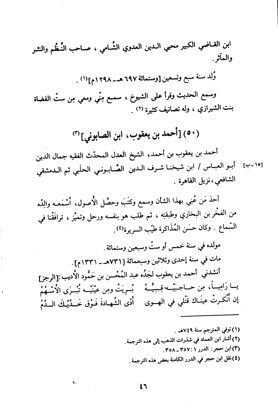 جَمَالُ الدِّينِ أَبُو الْعَبَّاسِ ابْنُ شَيْخِنَا شَرَفِ الدِّينِ الصَّابُونِيِّ الْحَلَبِيِّ ثُمَّ الدِّمَشْقِيُّ الشَّافِعِيُّ، نَزِيلُ الْقَاهِرَةِ.