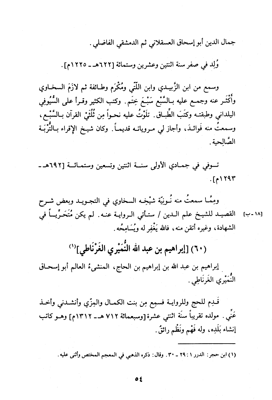 جَمَالُ الدِّينِ أَبُو إِسْحَاقَ الْعَسْقَلَانِيُّ ثُمَّ الدِّمَشْقِيُّ الْفَاضِلِيُّ.
