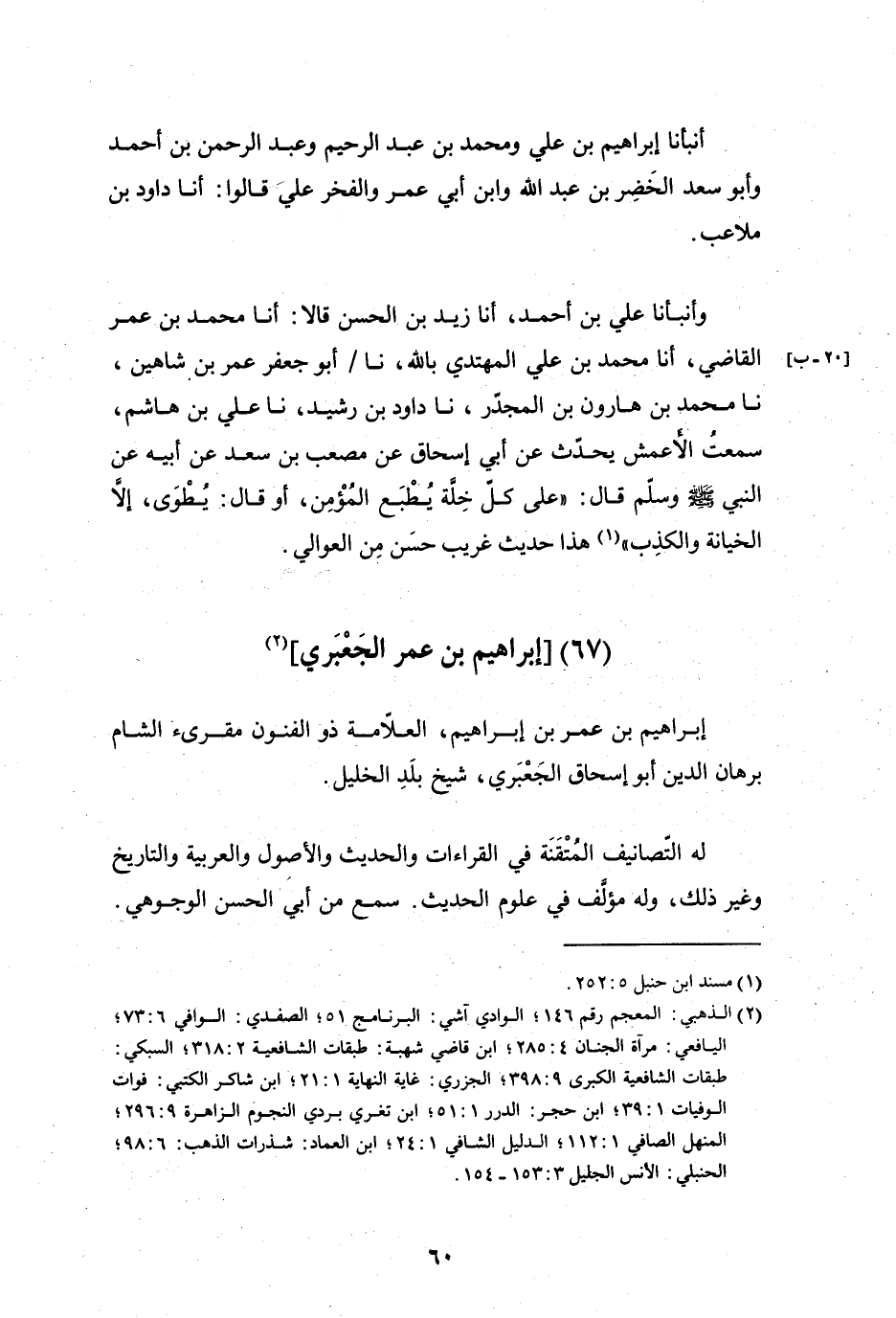 إِبْرَاهِيمُ بْنُ عُمَرَ بْنِ إِبْرَاهِيمَ، الْعَلَّامَةُ ذُو الْفُنُونِ مُقْرِئُ الشَّامِ بُرْهَانُ الدِّينِ أَبُو إِسْحَاقَ الْجَعْبَرِيُّ، شَيْخُ بَلَدِ الْخَلِيلِ، لَهُ التَّصَانِيفُ الْمُتْقَنَةُ فِي الْقِرَاءَاتِ وَالْحَدِيثِ وَالْأُصُولِ الْعَرَبِيَّةِ وَالتَّارِيخِ وَغَيْرِ ذَلِكَ، وَلَهُ مُؤَلَّفٌ فِي عُلُومِ الْحَدِيثِ.