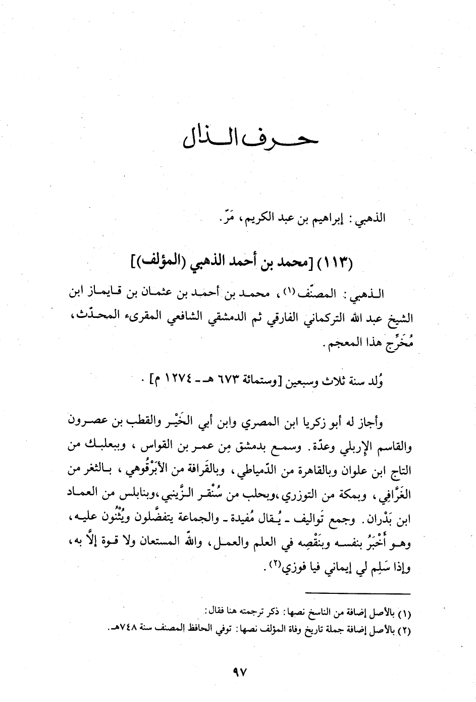 الذَّهَبِيُّ: الْمُصَنِّفُ، مُحَمَّدُ بْنُ أَحْمَدَ بْنِ عُثْمَانَ بْنِ قَايِمَازَ ابْنِ الشَّيْخِ عَبْدِ اللَّهِ التُّرْكُمَانِيُّ الْفَارِقِيُّ ثُمَّ الدِّمَشْقِيُّ الشَّافِعِيُّ الْمُقْرِئُ الْمُحَدِّثُ، مُخَرِّجُ هَذَا الْمُعْجَمِ.