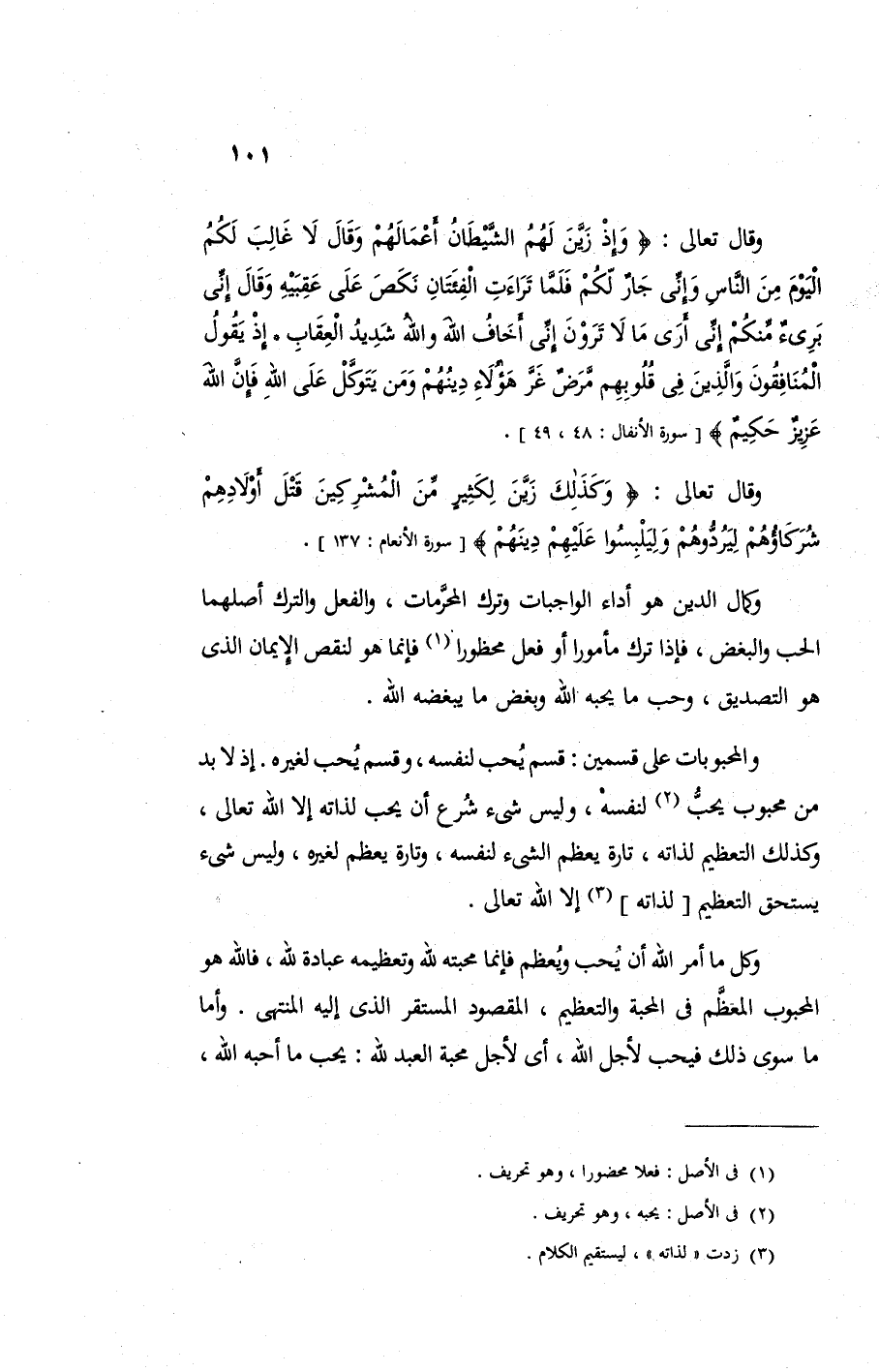 وكمال الدين هو أداء الواجبات وترك المحرمات والفعل والترك أصلهما الحب والبغض فإذا ترك مأمورا أو فعل محظورا فإنما هو لنقص الإيمان الذي هو التصديق وحب ما يحبه الله وبغض ما يبغضه الله