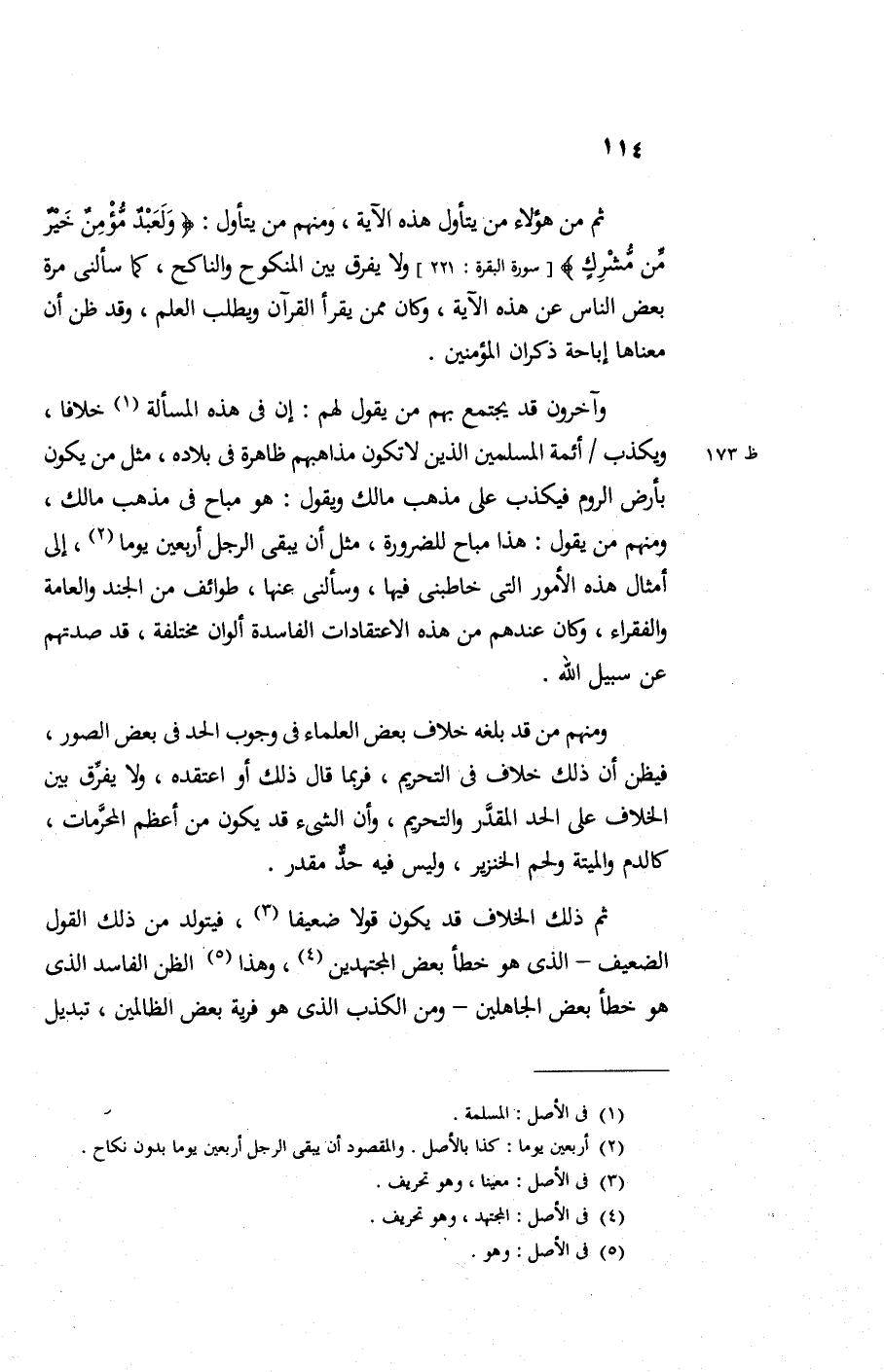 ثم ذلك الخلاف قد يكون قولا ضعيفا فيتولد من ذلك القول الضعيف الذي هو خطأ بعض المجتهدين وهذا الظن الفاسد الذي هو خطأ بعض الجاهلين ومن الكذب الذي هو فرية بعض الظالمين تبديل
