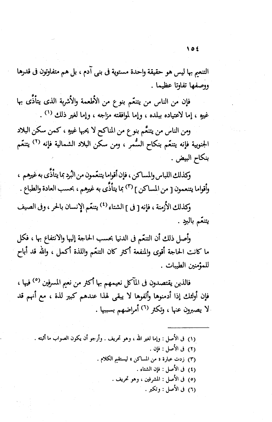 وكذلك اللباس والمساكن فإن أقواما يتنعمون من البرد بما يتأذي به غيرهم وأقواما يتنعمون من المساكن بما يتأذي به غيرهم بحسب العادة والطباع