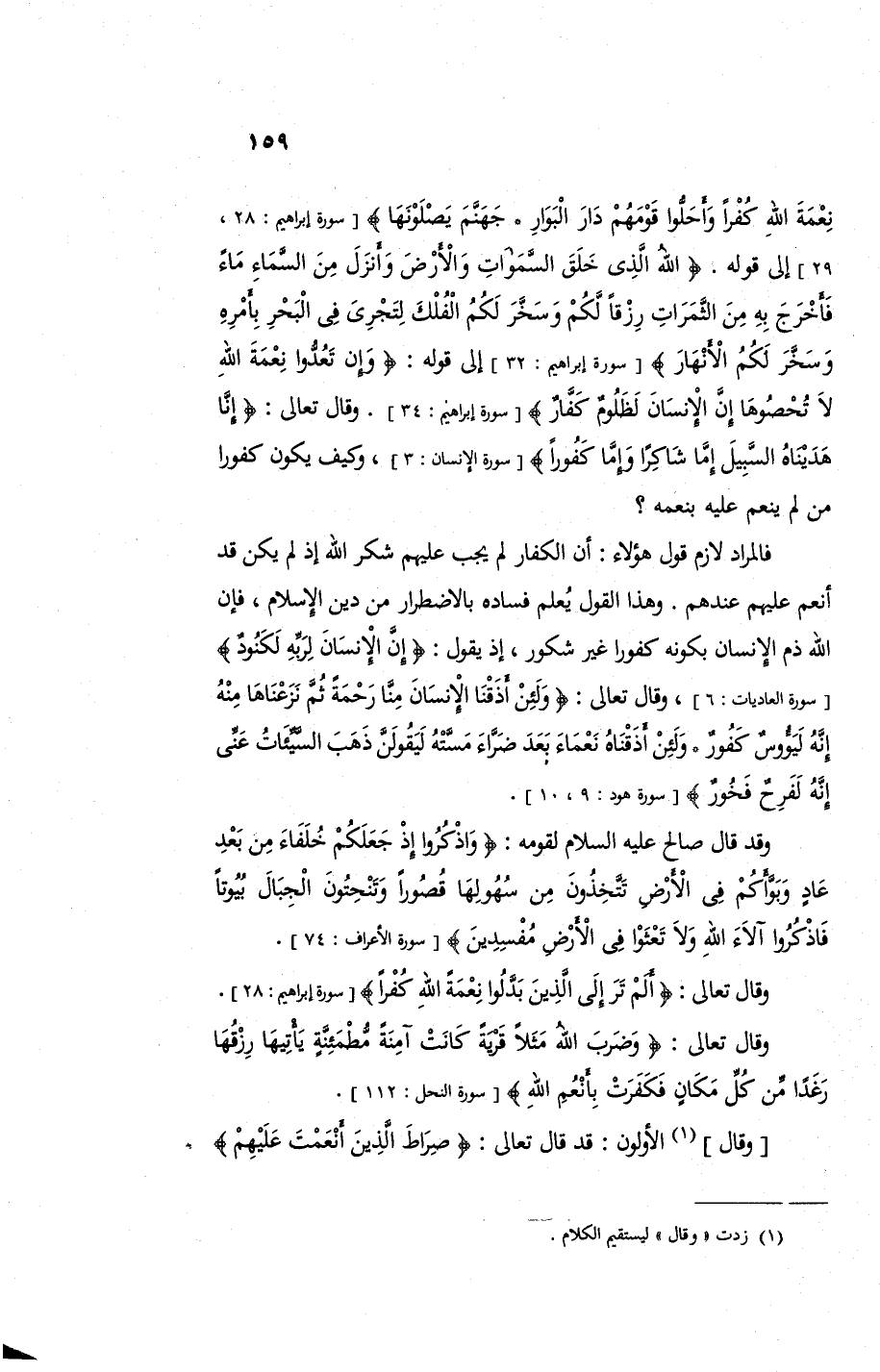 نِعْمَتَ اللَّهِ كُفْراً وَأَحَلُّوا قَوْمَهُمْ دَارَ الْبَوَارِ. جَهَنَّمَ يَصْلَوْنَهَا} إلى قوله: {اللَّهُ الَّذِي خَلَقَ السَّمَاوَاتِ وَالْأَرْضَ وَأَنْزَلَ مِنَ السَّمَاءِ مَاءً فَأَخْرَجَ بِهِ مِنَ الثَّمَرَاتِ رِزْقاً لَكُمْ وَسَخَّرَ لَكُمُ الْفُلْكَ لِتَجْرِيَ فِي الْبَحْرِ بِأَمْرِهِ وَسَخَّرَ لَكُمُ الْأَنْهَارَ} إلى قوله: {وَإِنْ تَعُدُّوا نِعْمَتَ اللَّهِ لا تُحْصُوهَا إِنَّ الْأِنْسَانَ لَظَلُومٌ كَفَّارٌ} وقال تعالى: {إِنَّا هَدَيْنَاهُ السَّبِيلَ إِمَّا شَاكِراً وَإِمَّا كَفُوراً} وكيف يكون كفورا من لم ينعم عليه بنعمه