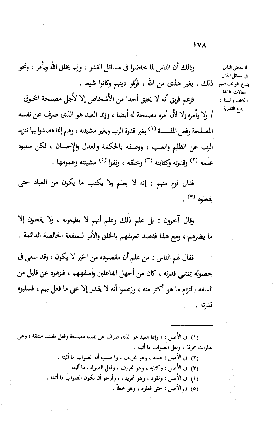 لما خاض الناس في مسائل القدر ابتد طوائف منهم مقالات مخالفة للكتاب والسنة، بدع القدرية