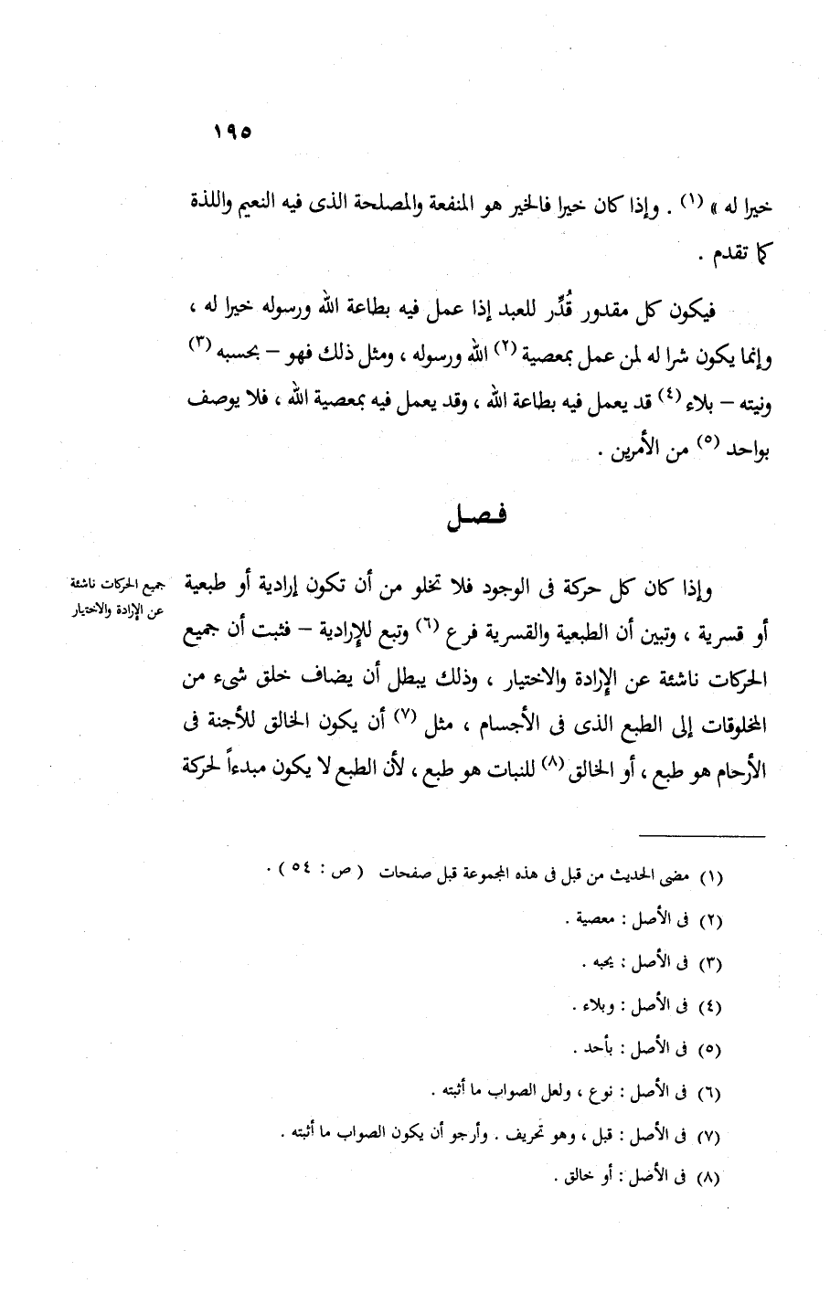 فصل، جميع الحركات ناشئة عن الإرادة والاختيار