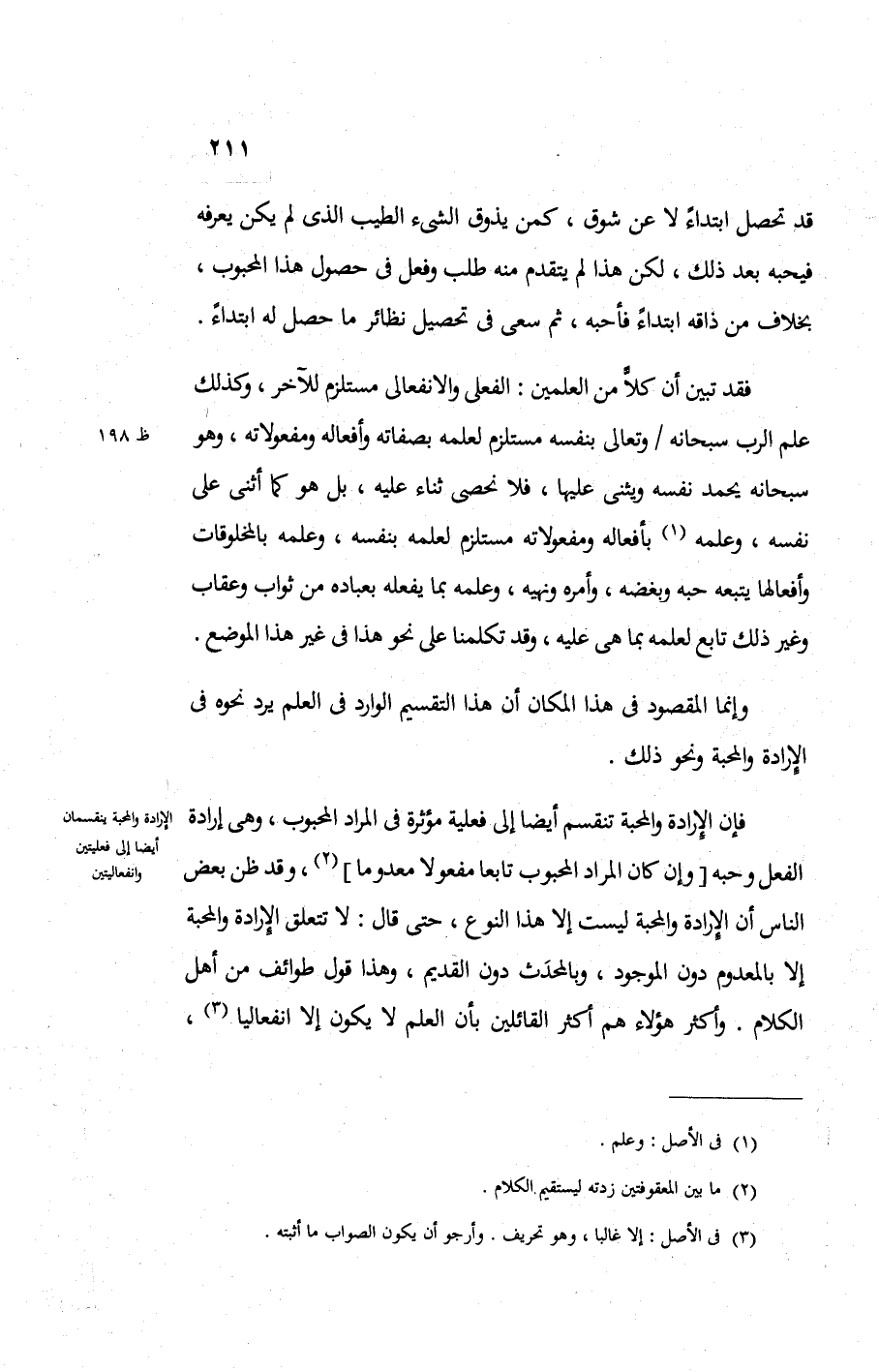 وإنما المقصود في هذا المكان أن هذا التقسيم الوارد في العلم يرد نحوه في الإرادة والمحبة ونحو ذلك