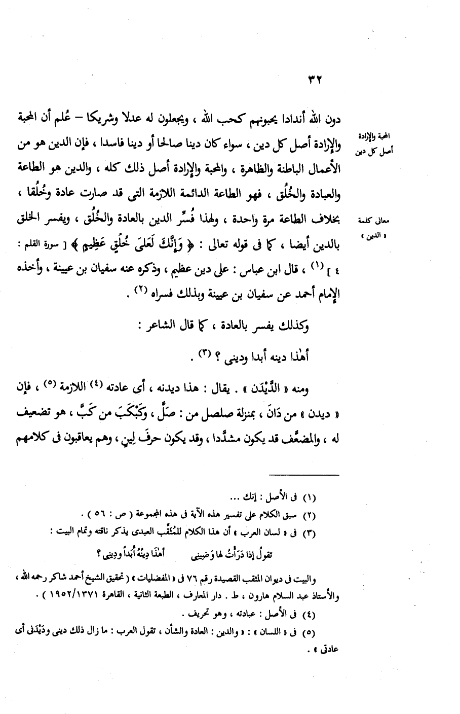 المحبة والإرادة أصل كل دين، معاني كلمة الدين