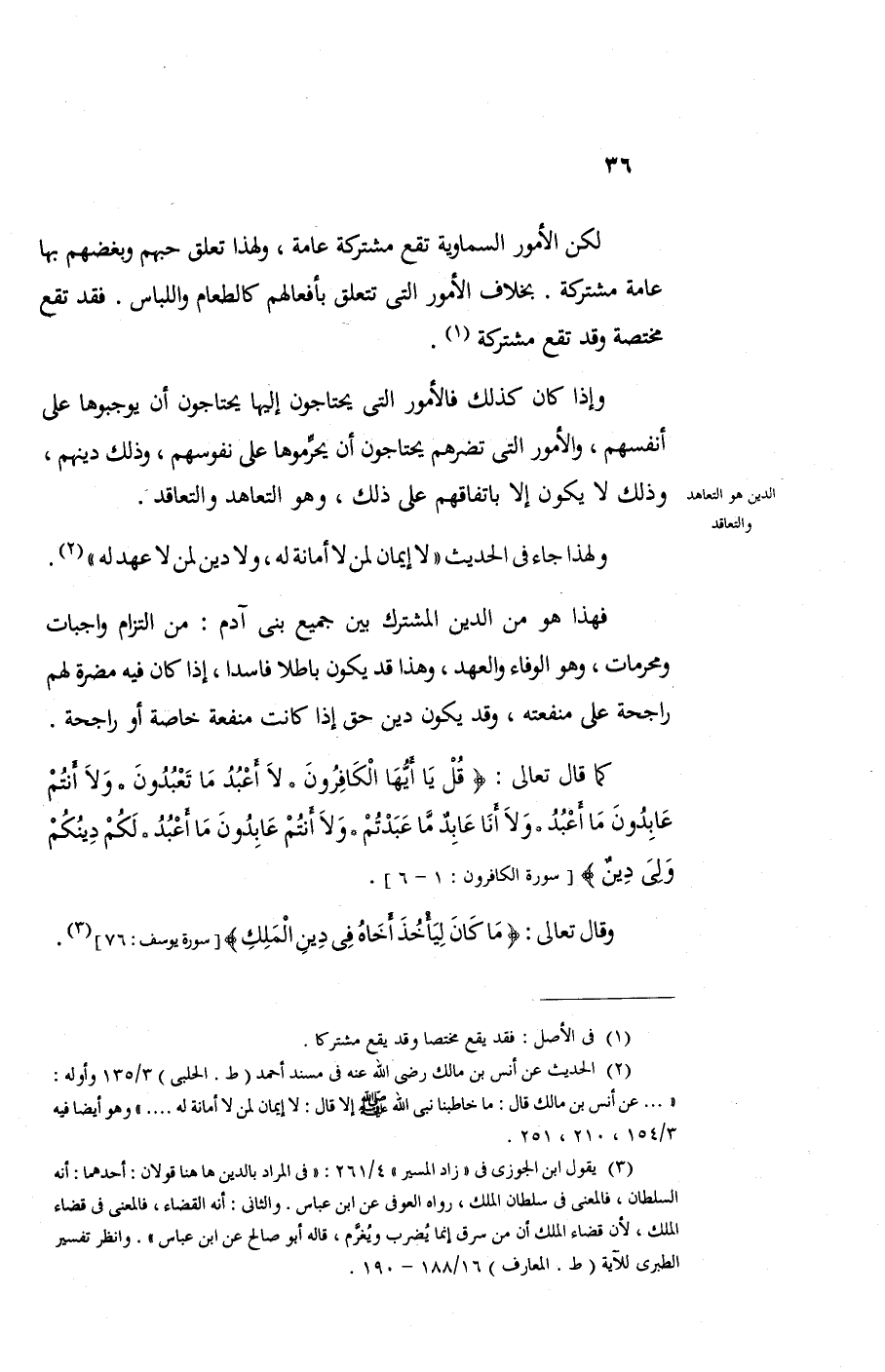 فهذا هو من الدين المشترك بين جميع بني آدم من التزام واجبات ومحرمات وهو الوفاء والعهد وهذا قد يكون باطلا فاسدا إذا كان فيه مضرة لهم راجحة على منفعته وقد يكون دين حق إذا كانت منفعة خاصة أو راجحة
