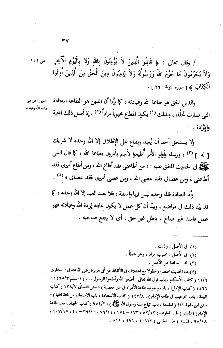 وقال تعالى: {قَاتِلُوا الَّذِينَ لا يُؤْمِنُونَ بِاللَّهِ وَلا بِالْيَوْمِ الْآخِرِ وَلا يُحَرِّمُونَ مَا حَرَّمَ اللَّهُ وَرَسُولُهُ وَلا يَدِينُونَ دِينَ الْحَقِّ مِنَ الَّذِينَ أُوتُوا الْكِتَابَ}