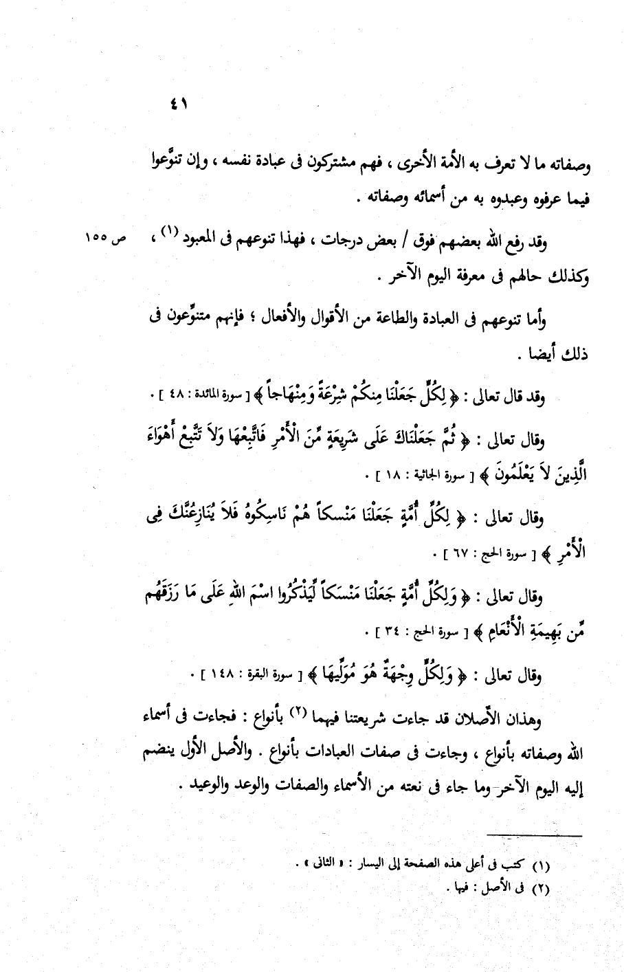 وصفاته ما لا تعرف به الأمة الأخرى فهم مشتركون في عبادة نفسه وإن تنوعوا فيما عرفوه وعبدوه به من أسمائه وصفاته
