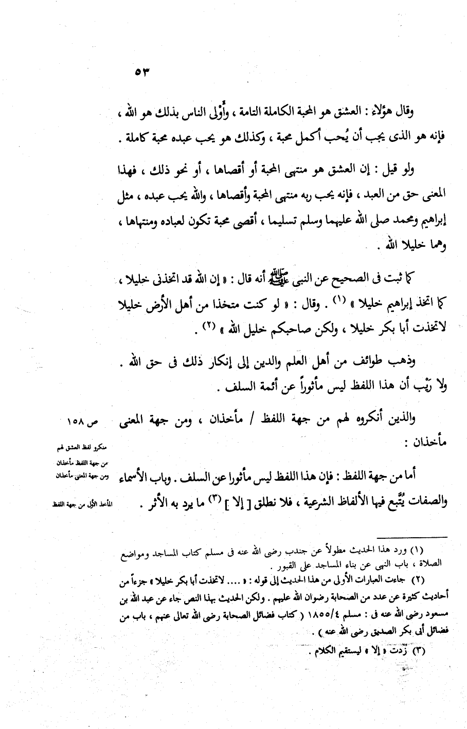 ولو قيل أن العشق هو منتهى المحبة أو أقصاها أو نحو ذلك فهذا المعني حق من العبد فإنه يحب ربه منتهي المحبة وأقصاها والله يحب عبده مثل إبراهيم ومحمد صلي الله عليها وسلم تسليما أقصي محبة تكون لعباده ومنتهاها وهما خليلا الله