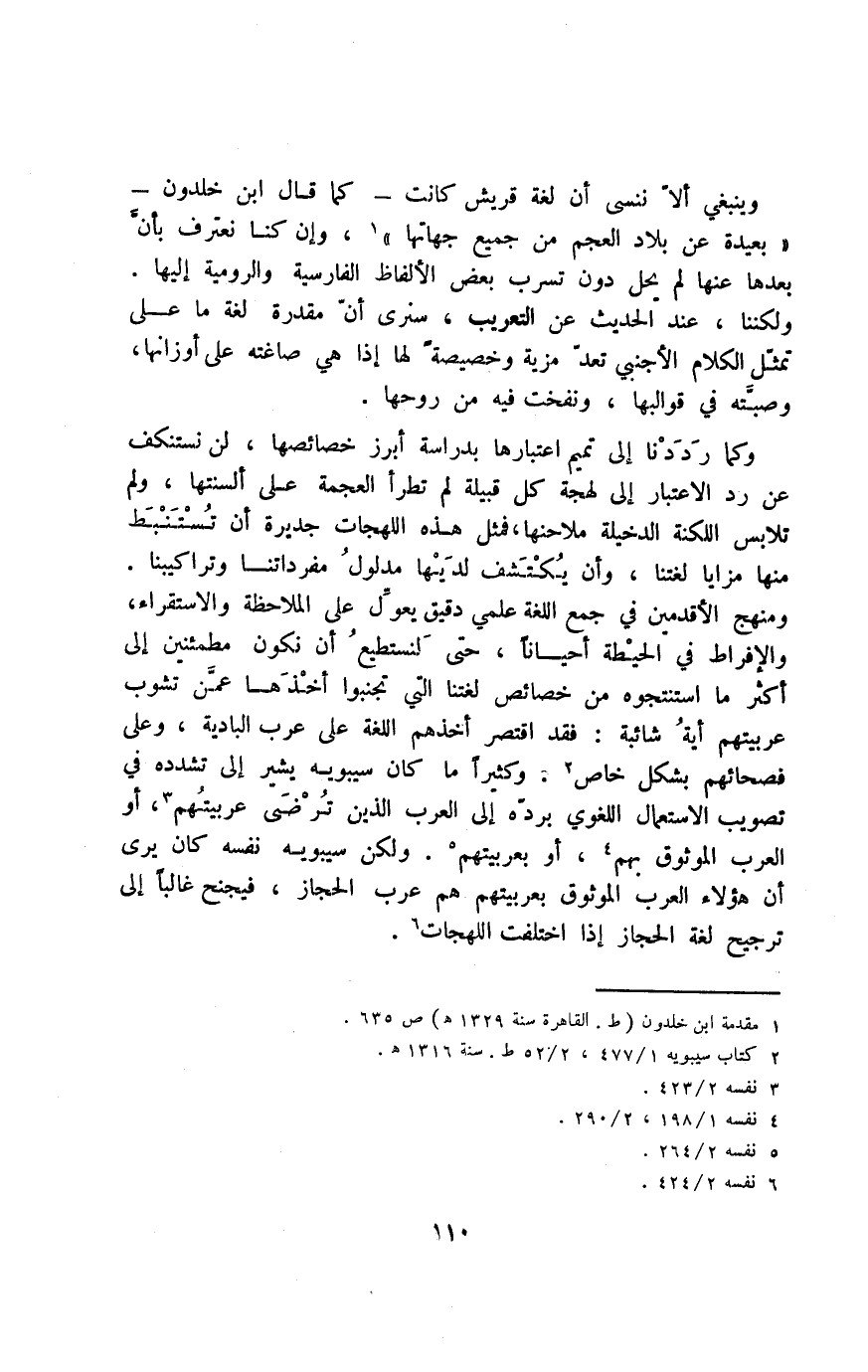 وكما رَدَدْنَا إلى تميم اعتبارها بدراسة أبرز خصائصها، لن نستنكف عن رد الاعتبار إلى لهجة كل قبيلة لم تطرأ العجمة على ألسنتها، ولم تلابس اللكنة الدخيلة ملاحنها، فمثل هذه اللهجات جديرة أن تستنبط منها مزايا لغتنا، وأن يكتشف لديها مدلول مفرداتنا وتراكيبنا.