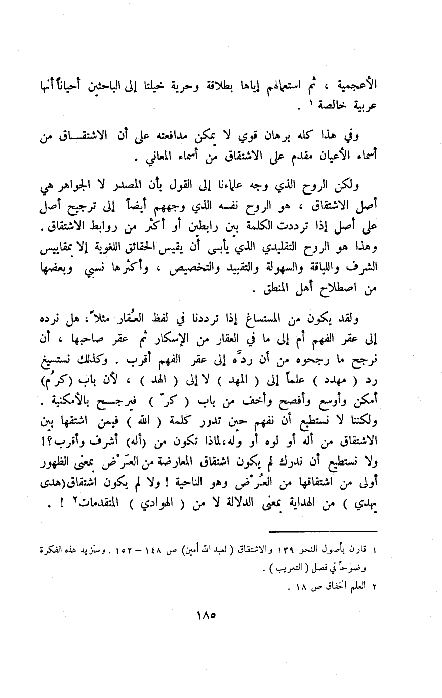 1 قارن بأصول النحو 29 والاشتقاق "لعبد الله أمين" ص148-152, وسنزيد هذه الفكرة وضوحًا في فصل "التعريب".