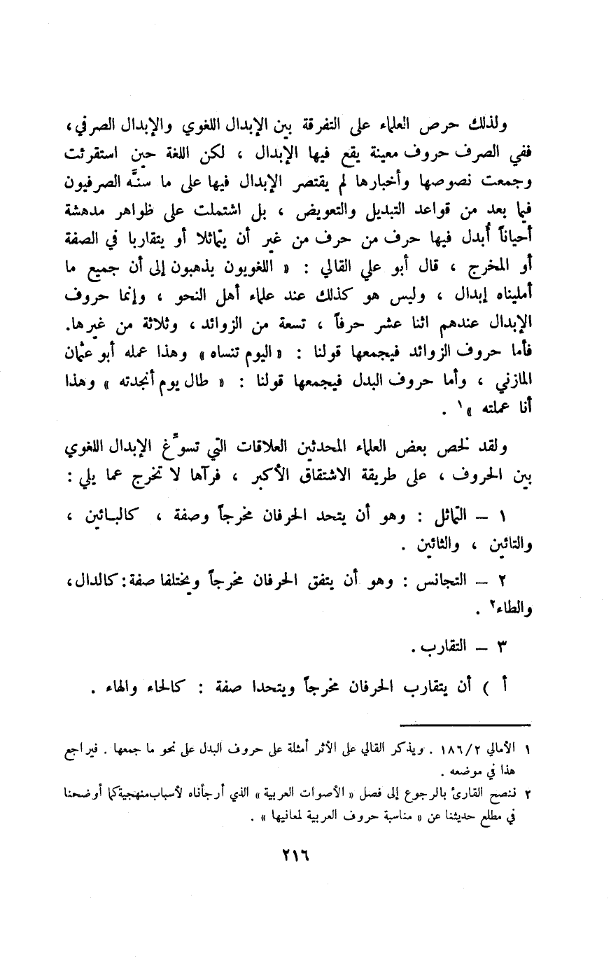 1 الأمالي 2/ 186, ويذكر القالي على الأثر أمثلة على حروف البدل عن نحو ما جمعها, فيراجع هذا في موضعه.