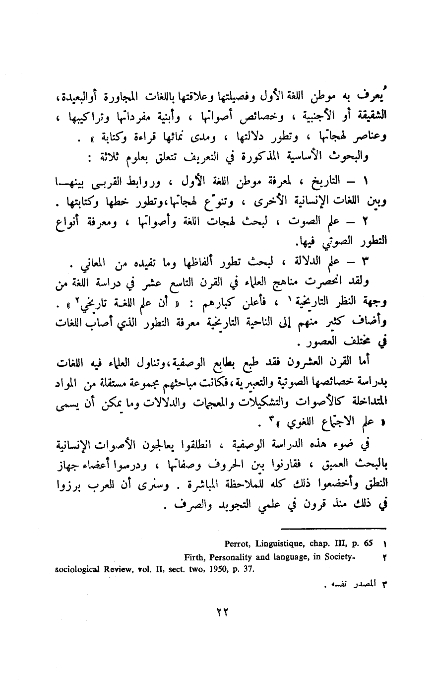 أما القرن العشرون فقد طبع بطابع الوصفية، وتناول العلماء فيه اللغات بدراسة خصائصه الصوتية والتعبيرية، فكانت مباحثهم مجموعة مستقلة من المواد المتداخلة؛ كالأصوات والتشكيلات والمعجمات والدلالات وما يمكن أن يسمى: "علم الاجتماع اللغوي"3.