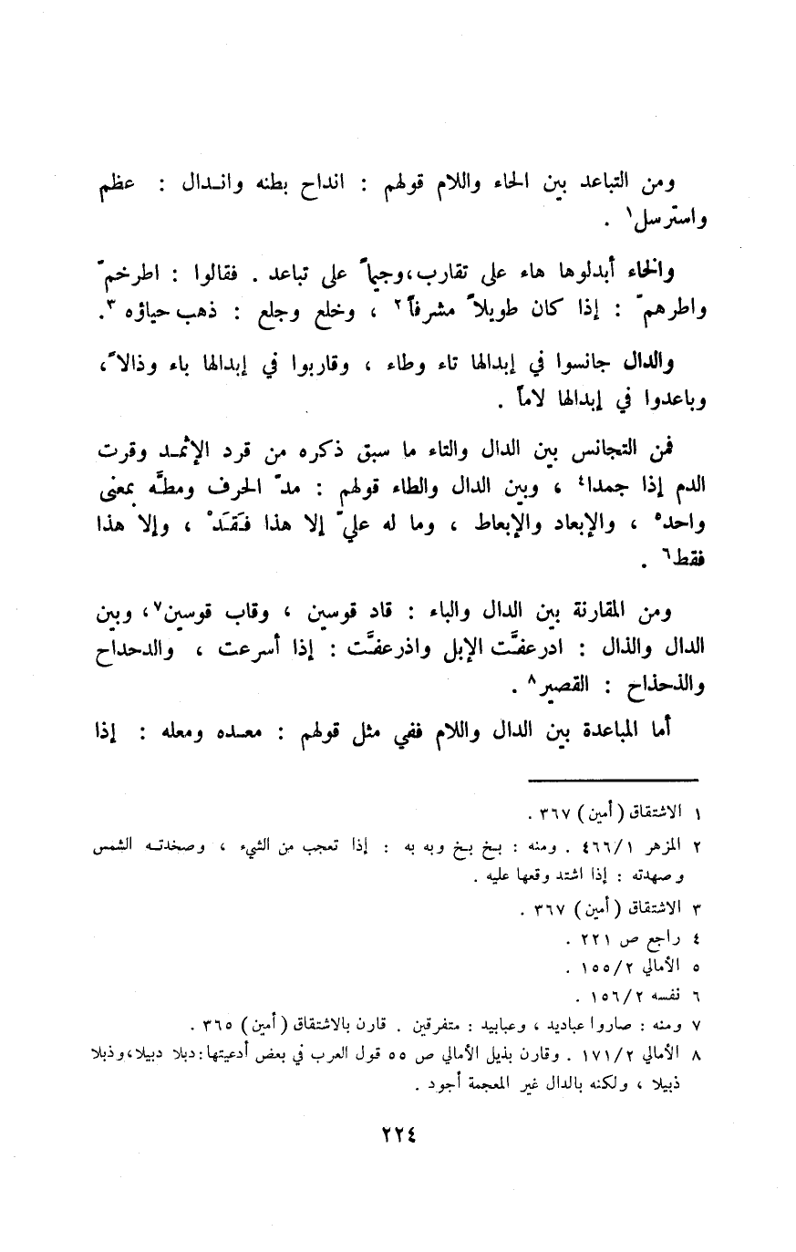 ومن المقارنة بين الدال والباء: قاد قوسين وقاب قوسين7، وبين الدال والذال: ادرعفَّت الإبل واذرعفت: إذا أسرعت، والدحداح والذحذاح: القصير8.