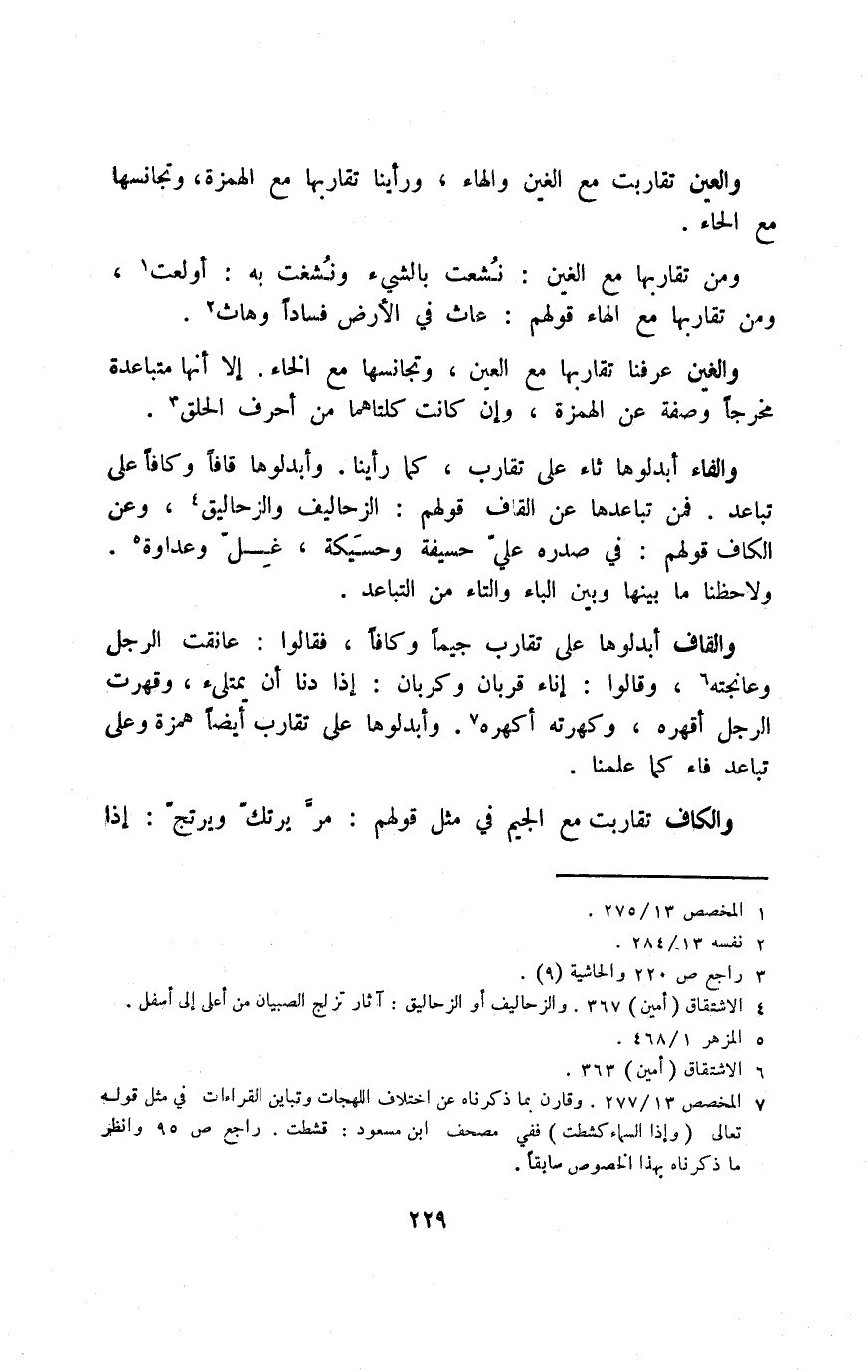 7 المخصص 13/ 277. وقارن بما ذكرناه عن اختلاف اللهجات وتباين القراءات في مثل قوله تعالى: {وَإِذَا السَّمَاءُ كُشِطَتْ} ففي مصحف ابن مسعود: قشطت. راجع ص95، وانظر ما ذكرناه بهذا الخصوص سابقًا.