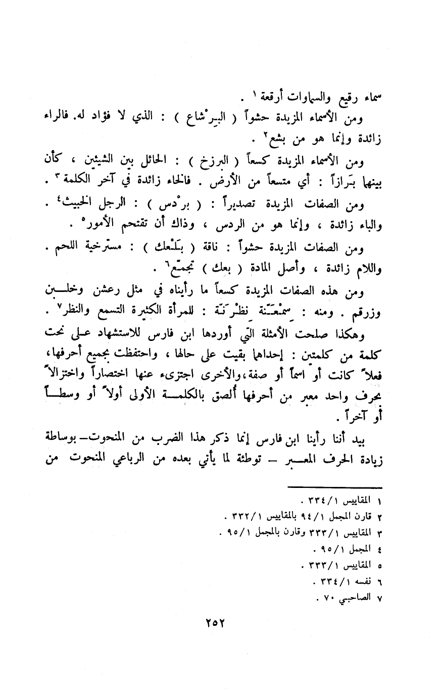 ومن الأسماء المزيدة حشوًا "البِرْشاع": الذي لا فؤاد له. فالراء زائدة وإنما هو من بشع2.