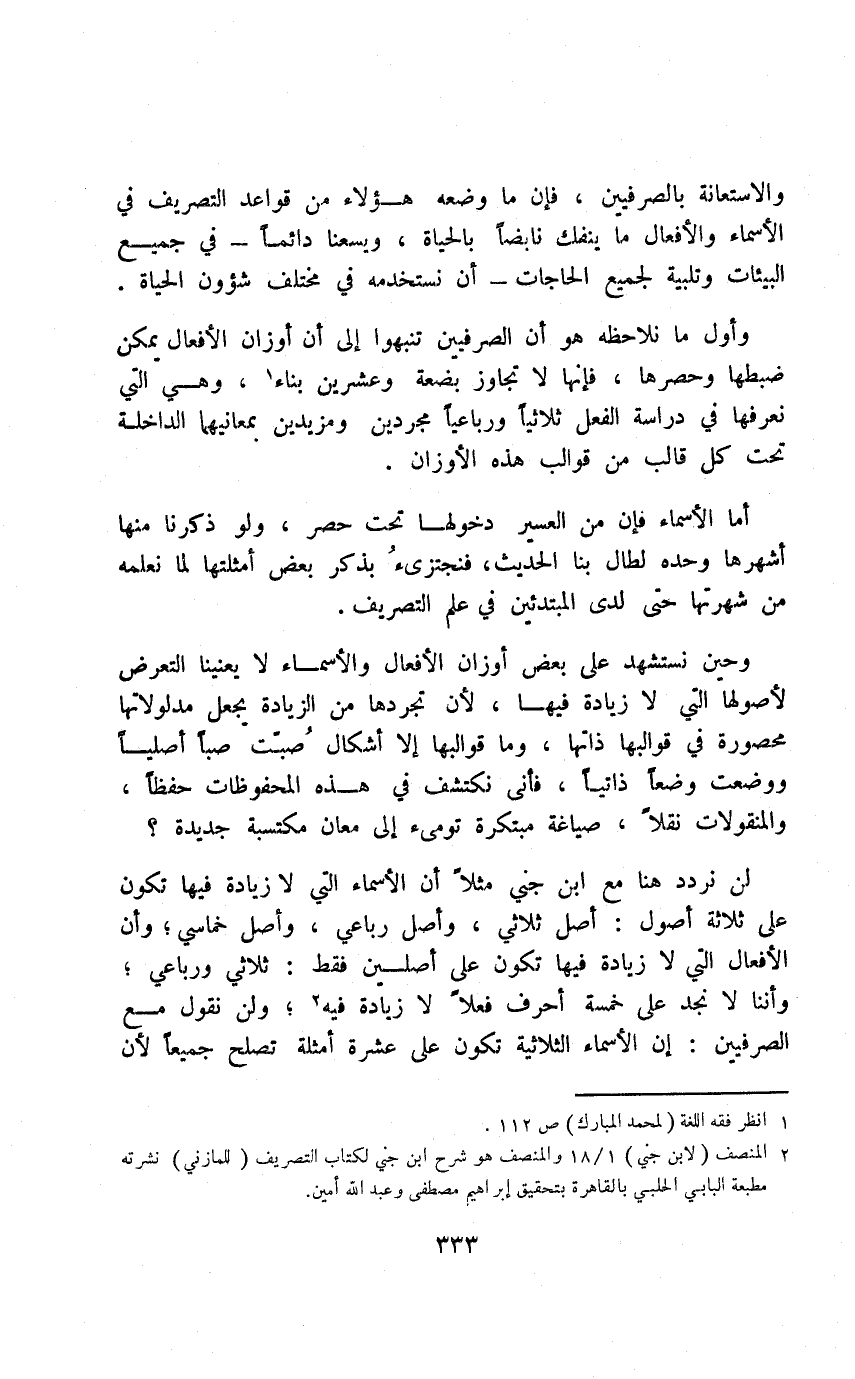 والاستعانة بالصرفيين، فإن ما وضعه هؤلاء من قواعد التصريف في الأسماء والأفعال ما ينفك نابضًا بالحياة، ويسعنا دائمًا -في جميع البيئات وتلبية لجميع الحاجات- أن نستخدمه في مختلف شئون الحياة.
