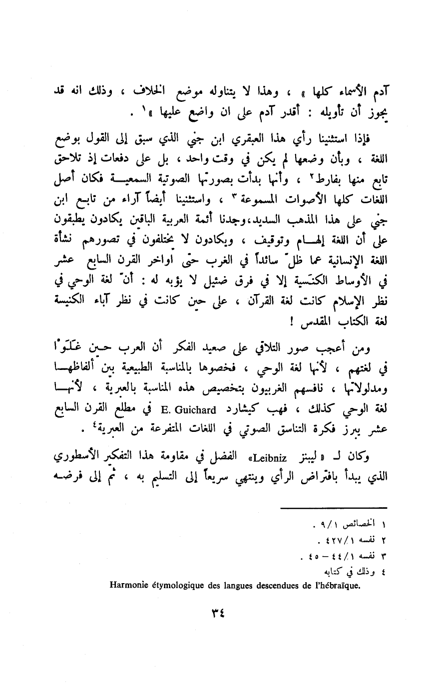 ومن أعجب صور التلاقي على صعيد الفكر أن العرب حين غَلَوْا في لغتهم؛ لأنها لغة الوحي، فخصوها بالمناسبة الطبيعية بين ألفاظها ومدلولاتها، نافسهم الغربيون بتخصيص هذه المناسبة بالعبرية؛ لأنها لغة الوحي كذلك، فهبَّ كيشارد E. Giichrd, في مطلع القرن السابع عشر يبرز فكرة التناسق الصوتي في اللغات المتفرعة من العبرية4.