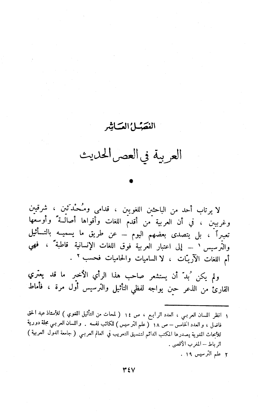 الفصل العاشر: العربية في العصر الحديث
