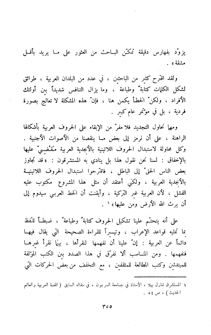 1 المستشرق شارل بيلا، الأستاذ في جامعة السربون، في مقاله السابقة "اللغة العربية والعالم الحديث" ص54.