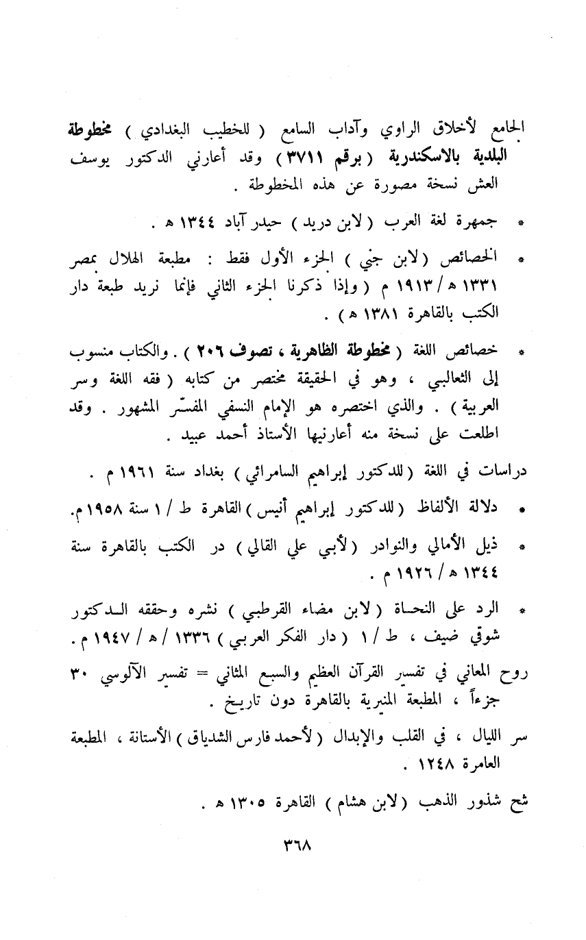 دراسات في اللغة "للدكتور إبراهيم السامرائي" بغداد سنة 1961م.