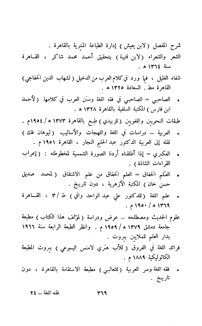 * فقه اللغة وسر العربية "للثعالبي" مطبعة الاستقامة بالقاهرة، دون تاريخ.