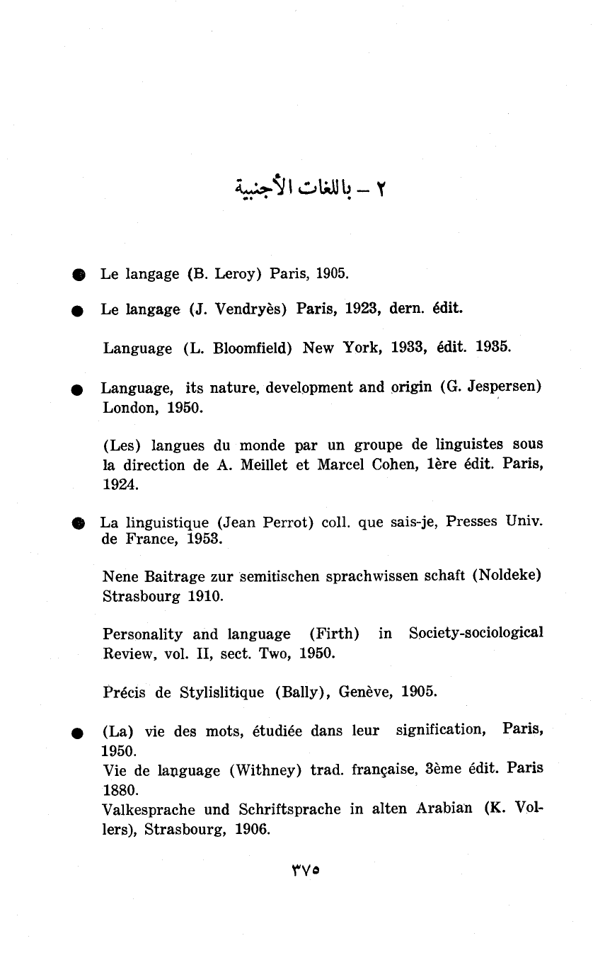 Valkesprache und Schriftsprache in alten Arabian (K. Vol-lers) , Strasbourg, 1906.