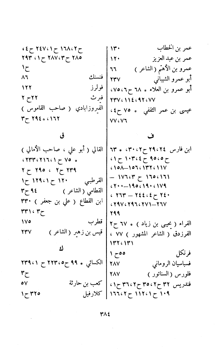 ابن فارس 24، ح2، 30، * 63 ح5، 95 ح4، 103 ح1، 117، 132؛ 156-158، 161، 165 ح3، 176-179، 190، 195-200، 240 ح4، 244-263، 267-271، 296، 297، 299