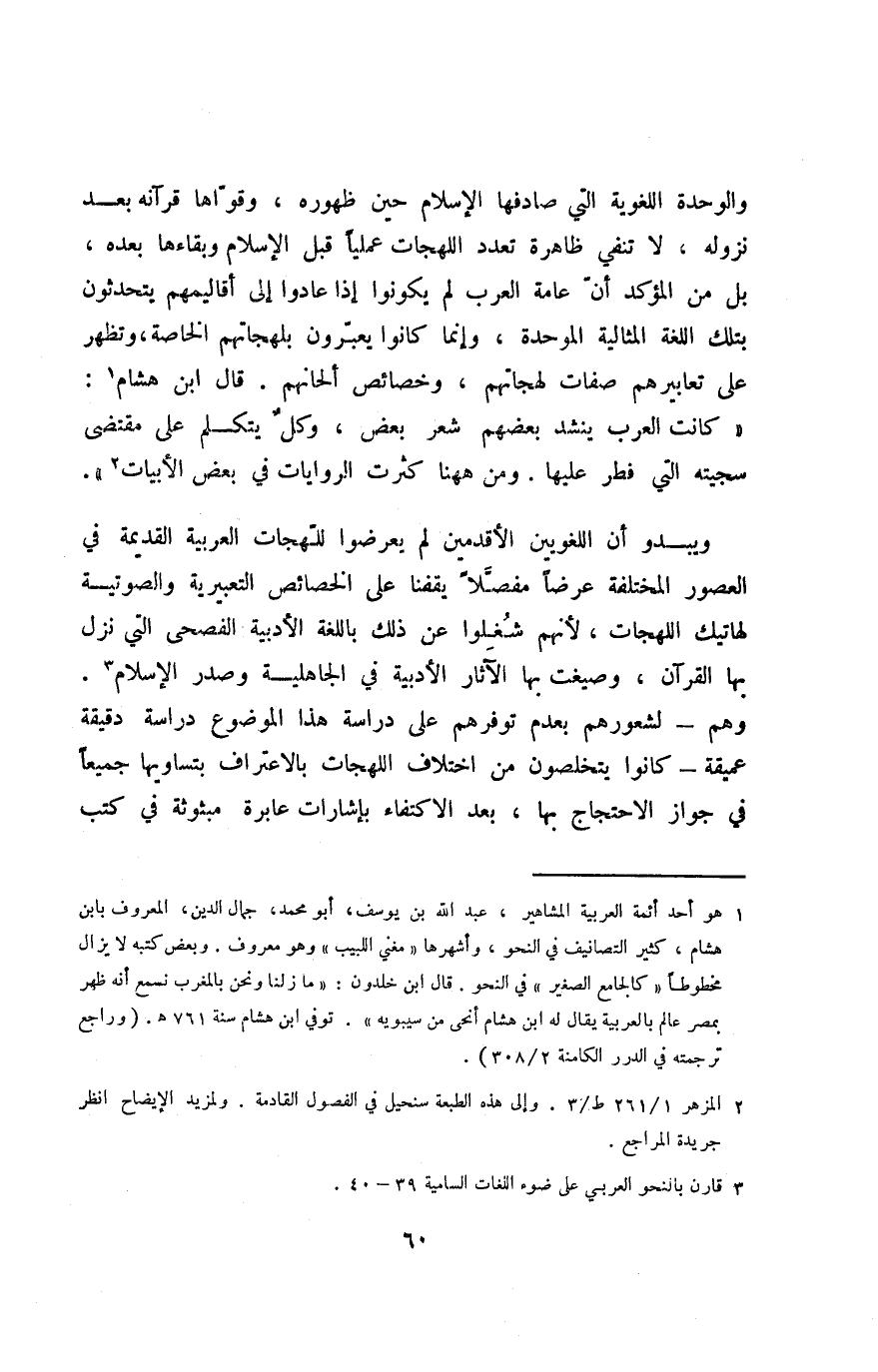 وهم -لشعورهم بعدم توفرهم على دراسة هذا الموضوع دراسة دقيقة عميقة- كانوا يتخلصون من اختلاف اللهجات بالاعتراف بتساويها جميعًا في جواز الاحتجاج بها، بعد الاكتفاء بإشارات عابرة مبثوثة في كتب