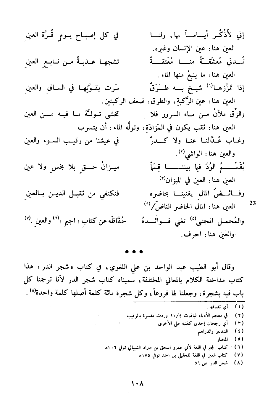 وَقَالَ أَبُو الطّيب عبد الْوَاحِد بن عَليّ اللّغَوِيّ فِي كتاب شجر الدّرّ هَذَا كتاب مداخلة الْكَلَام بالمعاني الْمُخْتَلفَة سميناه كتاب شجر الدّرّ لأَنا ترجمنا كل بَاب فِيهِ بشجرة وَجَعَلنَا لَهَا فروعا وكل شَجَرَة مائَة كلمة أَصْلهَا كلمة وَاحِدَة