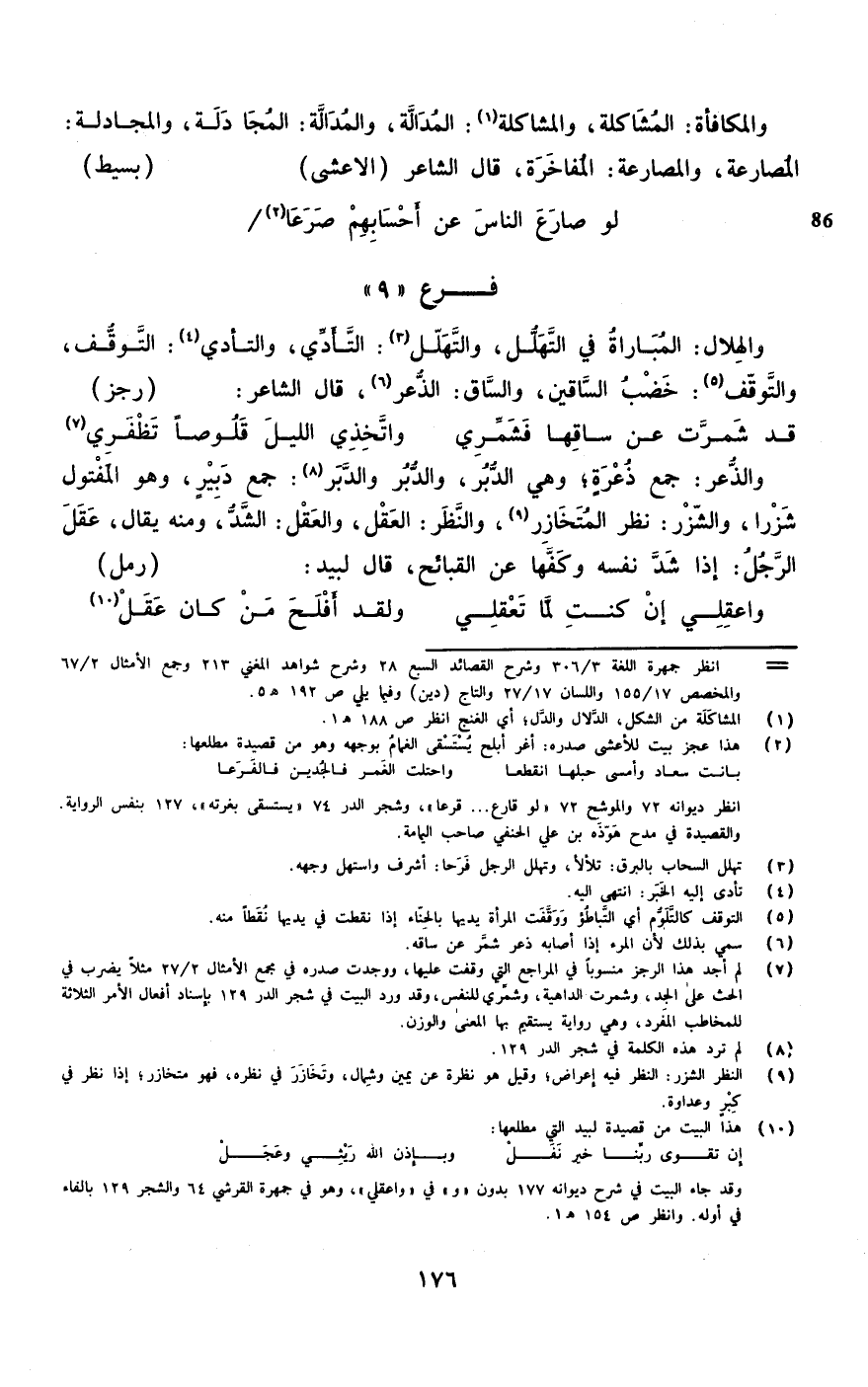 والمكافأة المشاكلة والمشاكلة المدالة والمدالة المجادلة والمجادلة المصارعة والمصارعة الْمُفَاخَرَة قَالَ الشَّاعِر الْأَعْشَى