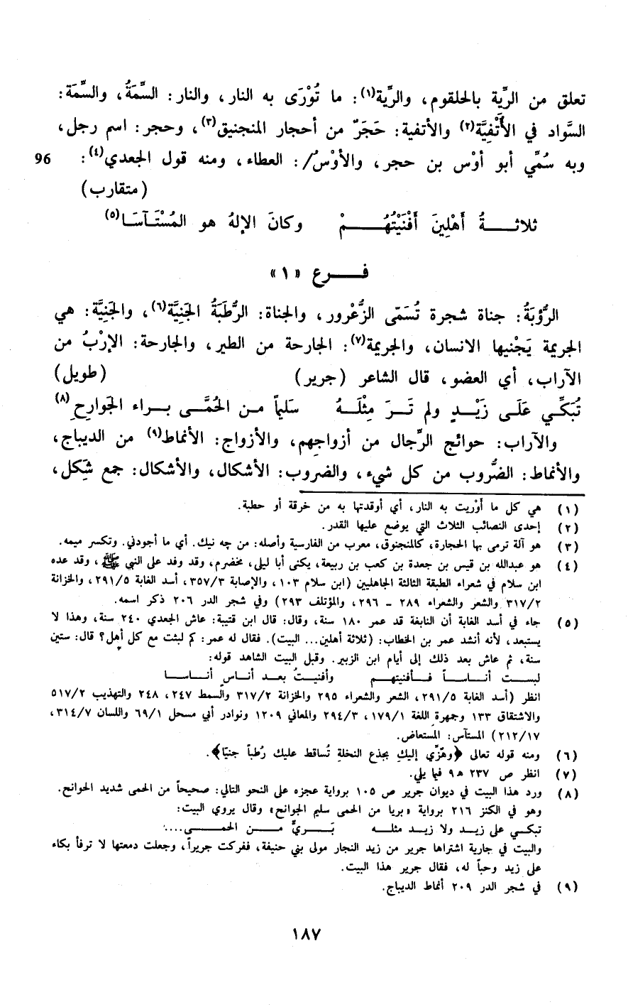 الرؤبة جناة شَجَرَة تسمى الزعرور والجناة الرّطبَة الجنية والجنية هِيَ الجريمة يجنيها الانسان والجريمة الْجَارِحَة من الطير والجارحة الإرب من الْآرَاب أَي الْعُضْو قَالَ الشَّاعِر جرير