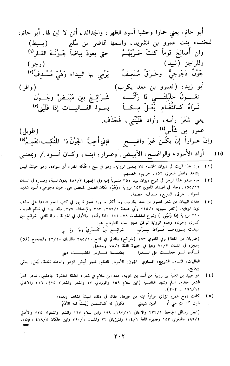 أَبُو حَاتِم يَعْنِي حمارا وحشيا أسود الظّهْر والجدائد أتن لَا لبن لَهَا أَبُو حَاتِم للخنساء بنت عَمْرو بن الشريد وَاسْمهَا تماضر بن سليم