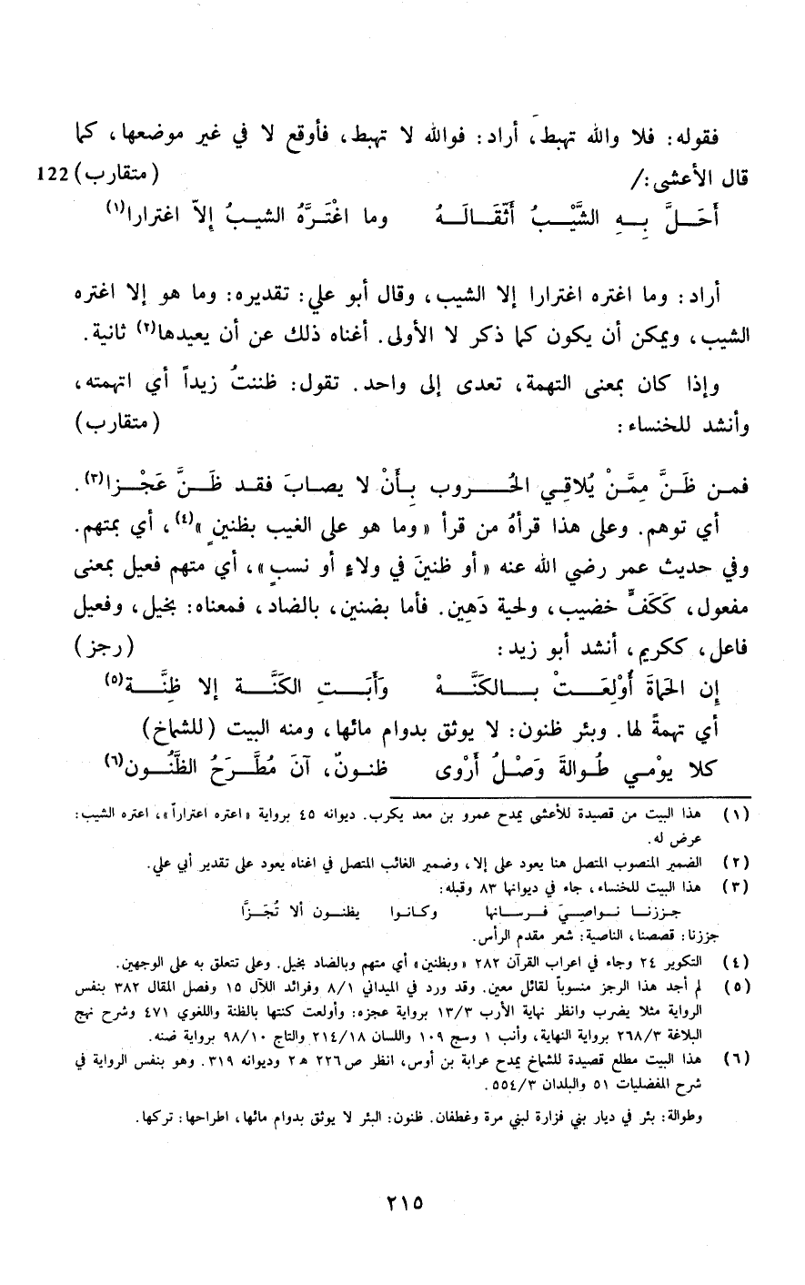أَرَادَ وَمَا اغتره اغْتِرَارًا إِلَّا الشيب وَقَالَ أَبُو عَليّ تَقْدِيره وَمَا هُوَ إِلَّا اغتره الشيب وَيُمكن أَن يكون كَمَا ذكر لَا الأولى أغناه ذَلِك عَن أَن يُعِيدهَا ثَانِيَة وَإِذا كَانَ بِمَعْنى التُّهْمَة تعدى إِلَى وَاحِد تَقول ظَنَنْت زيدا أَي اتهمته وَأنْشد للخنساء