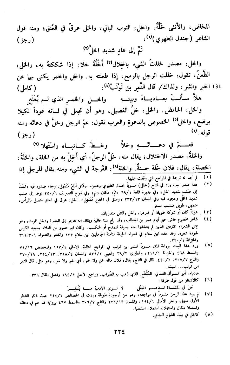 والخل مصدر خللت الشَّيْء بالخلال أخله خلا إِذا شككته بِهِ والخل الظعن تَقول خللت الرجل بِالرُّمْحِ إِذا طعنته بِهِ والخل وَالْخمر يكنى بهما عَن الْخَيْر وَالشَّر ولذاك قَالَ النمر بن تولب