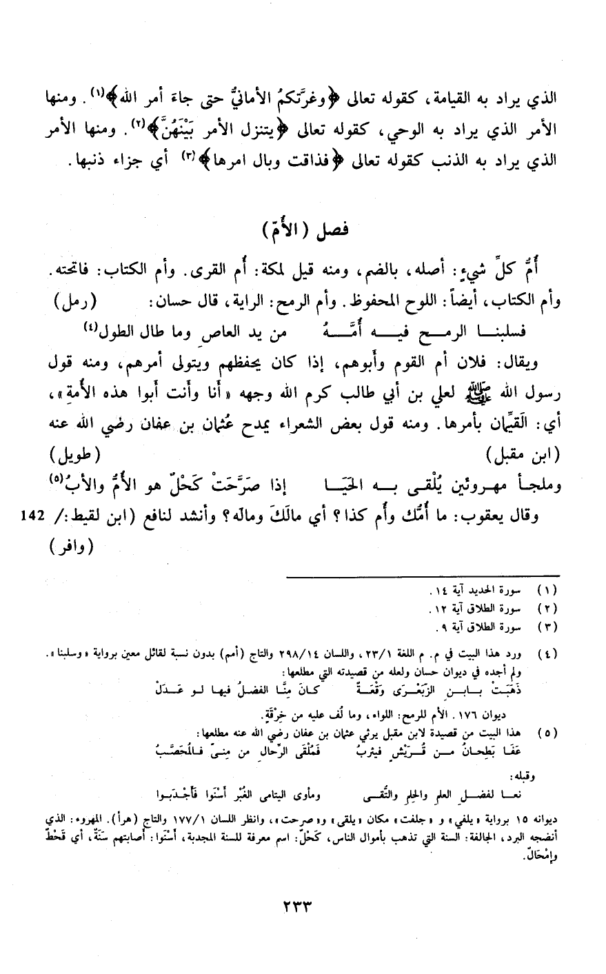 أم كل شَيْء أَصله بِالضَّمِّ وَمِنْه قيل لمَكَّة أم الْقرى وَأم الْكتاب فاتحته وَأم الْكتاب أَيْضا اللَّوْح الْمَحْفُوظ وَأم الرمْح الرَّايَة قَالَ حسان