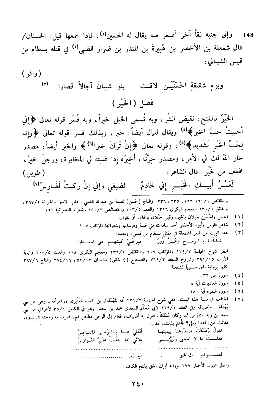 (وَيَوْم شَقِيقَة الحسنين لاقت ... بَنو شَيبَان آجالا قصارا) // وافر //