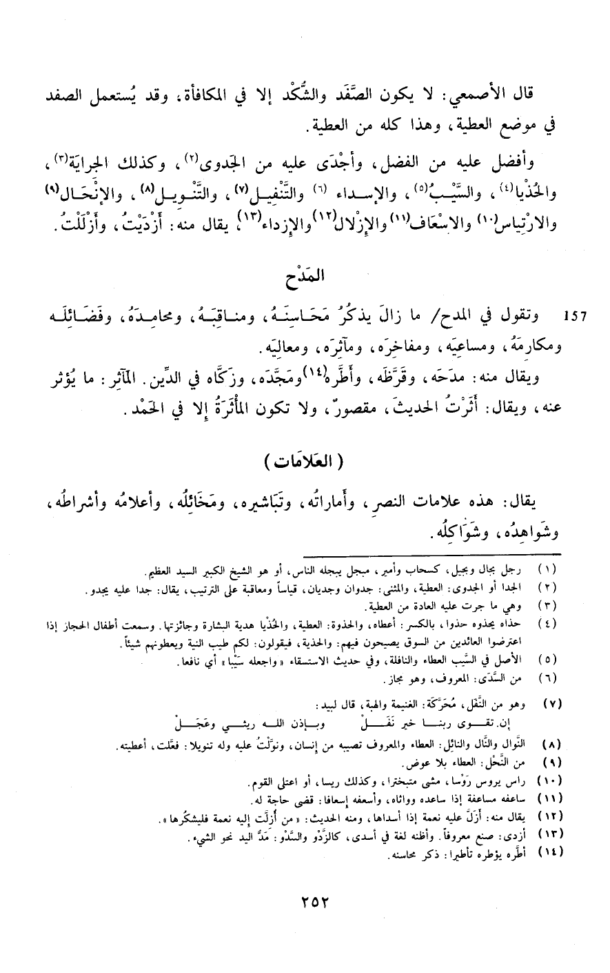 قَالَ الْأَصْمَعِي لَا يكون الصفد والشكد إِلَّا فِي الْمُكَافَأَة وَقد يسْتَعْمل الصفد فِي مَوضِع الْعَطِيَّة وَهَذَا كُله من الْعَطِيَّة