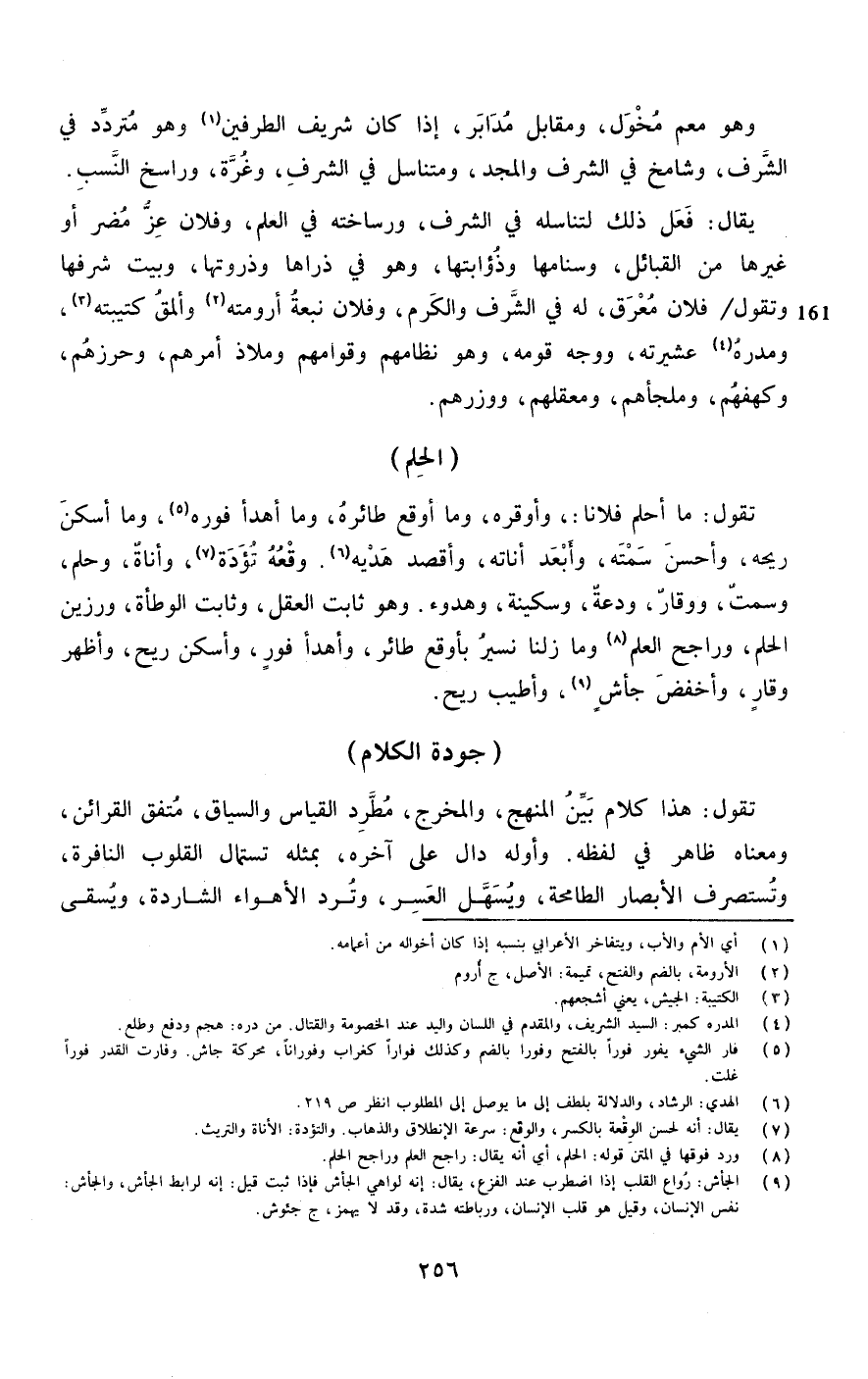 وَهُوَ معم مخول وَمُقَابل مدابر إِذا كَانَ شرِيف الطَّرفَيْنِ وَهُوَ مُتَرَدّد فِي الشّرف وشامخ فِي الشّرف وَالْمجد ومتناسل فِي الشّرف وغرة وراسخ النّسَب