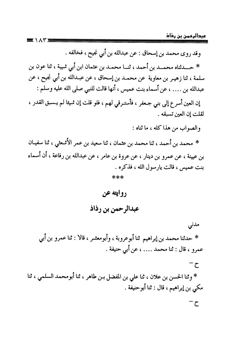 §رِوَايَتُهُ عَنْ عَبْدِ الرَّحْمَنِ بْنِ رَذَاذٍ مَدَنِيٌّ
