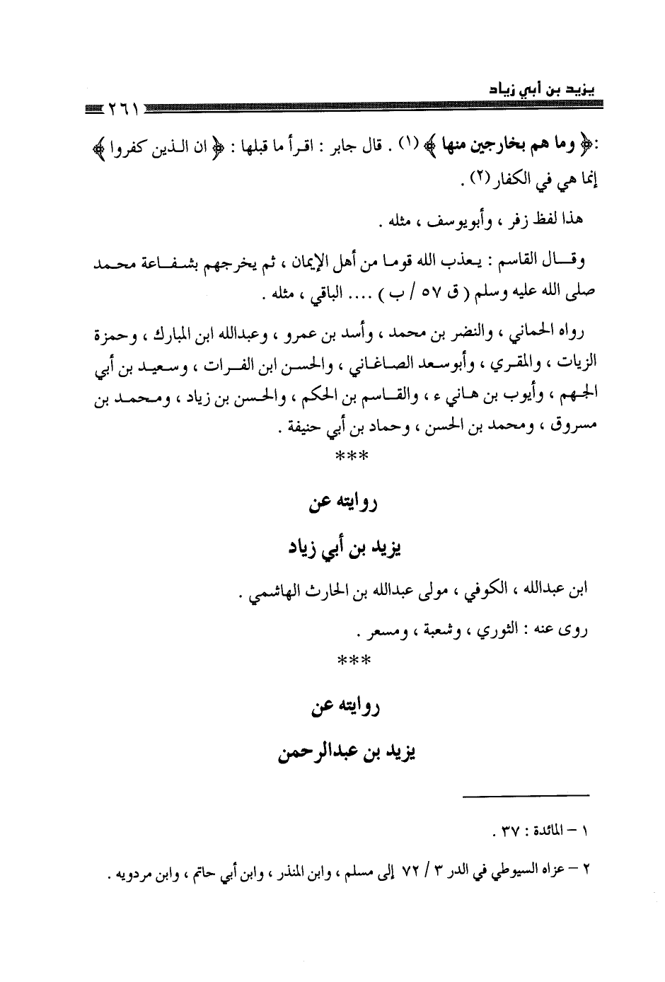 §رِوَايَتُهُ عَنْ يَزِيدَ بْنِ عَبْدِ الرَّحْمَنِ -[262]- بْنِ خَالِدٍ الدَّوْلَابِيِّ، وَاسِطِيُّ انْتَقِلَ إِلَى الْكُوفَةِ، رَوَى عَنْهُ الثَّوْرِيُّ