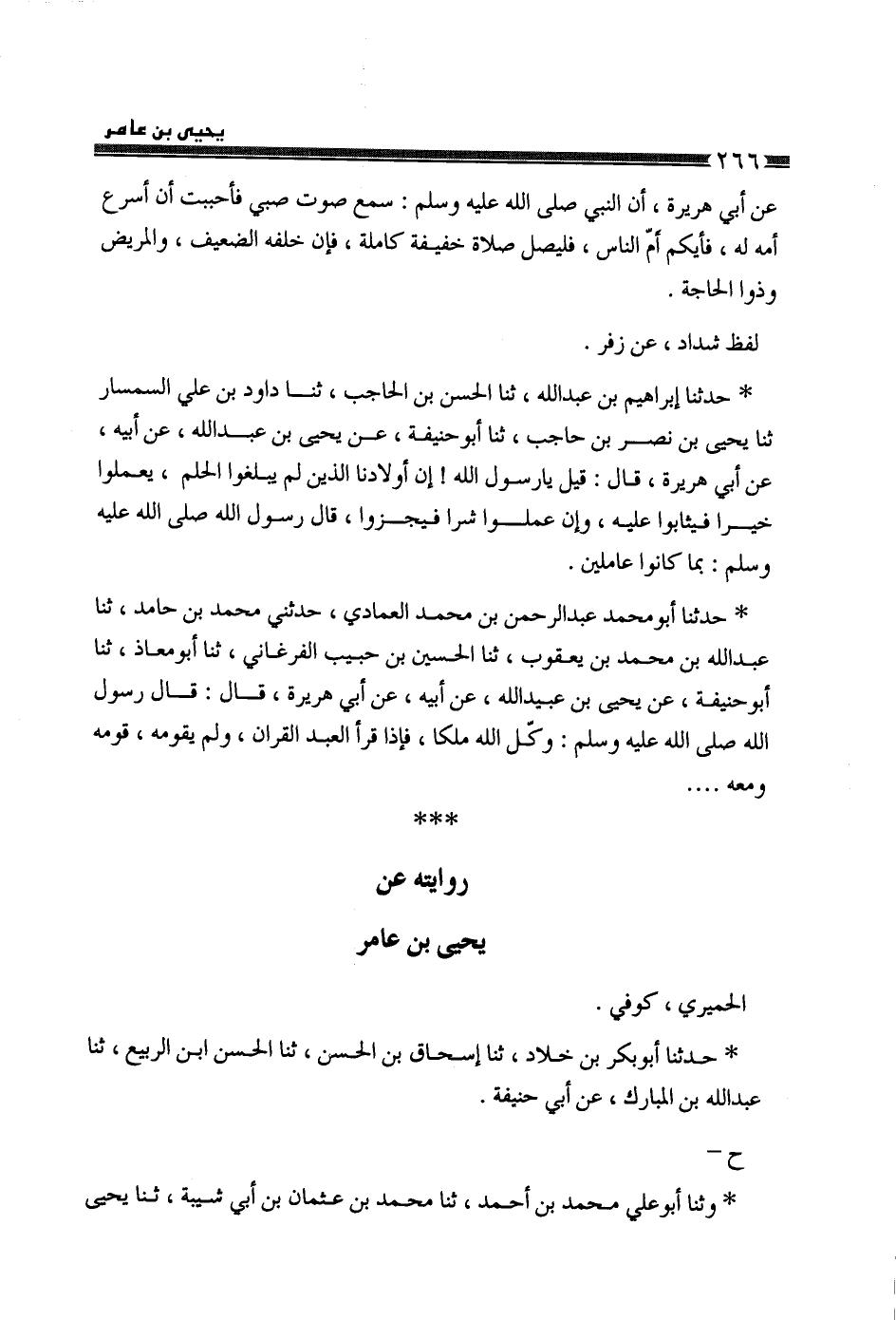§رِوَايَتُهُ عَنْ يَحْيَى بْنِ عَامِرٍ الْحِمْيَرِيِّ، كُوفِيٌّ