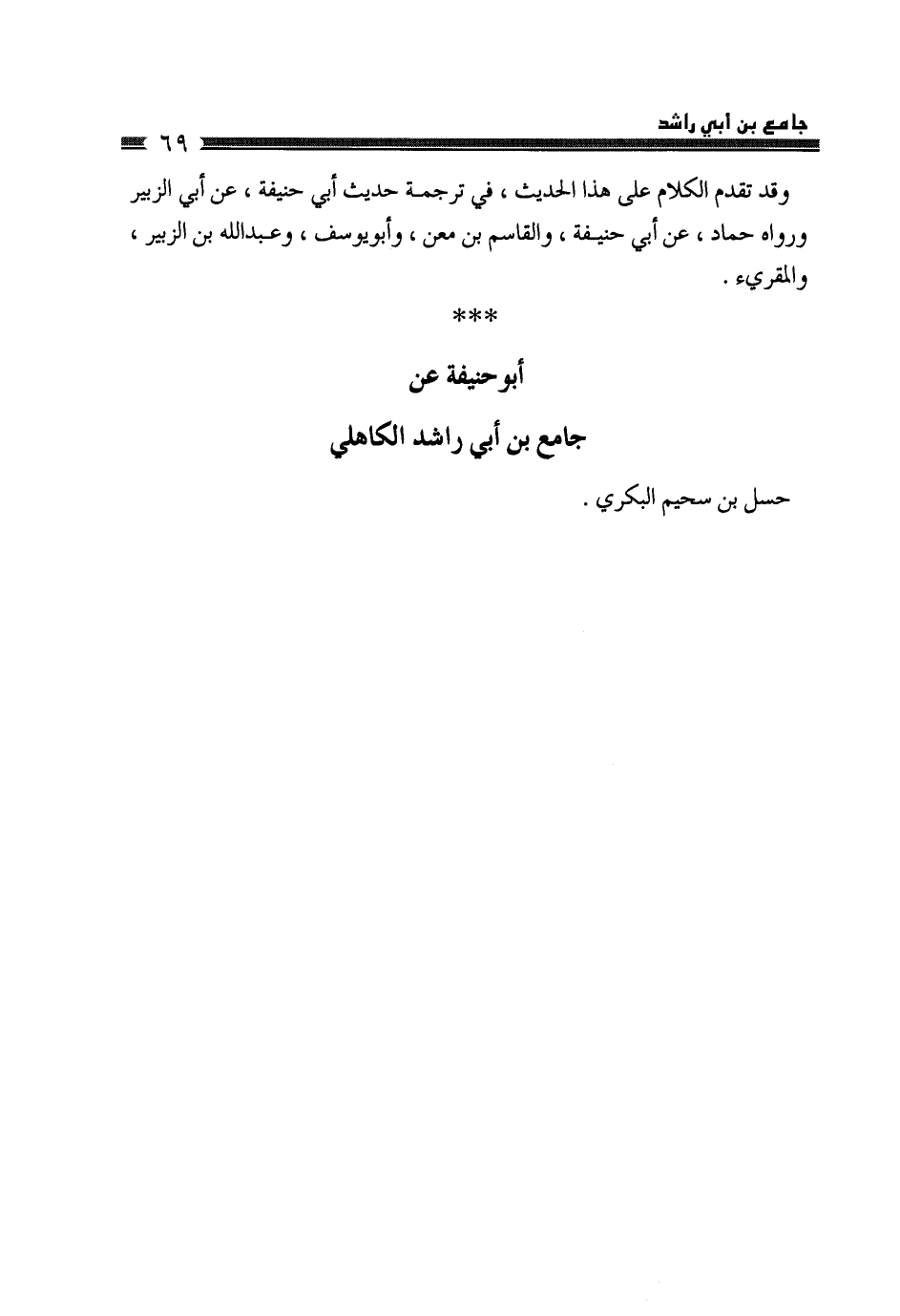 §أَبُو حَنِيفَةَ عَنْ جَامِعِ بْنِ أَبِي رَاشِدٍ الْكَاهِلِيِّ حِسْلُ بْنُ سُحَيْمٍ الْبَكْرِيُّ