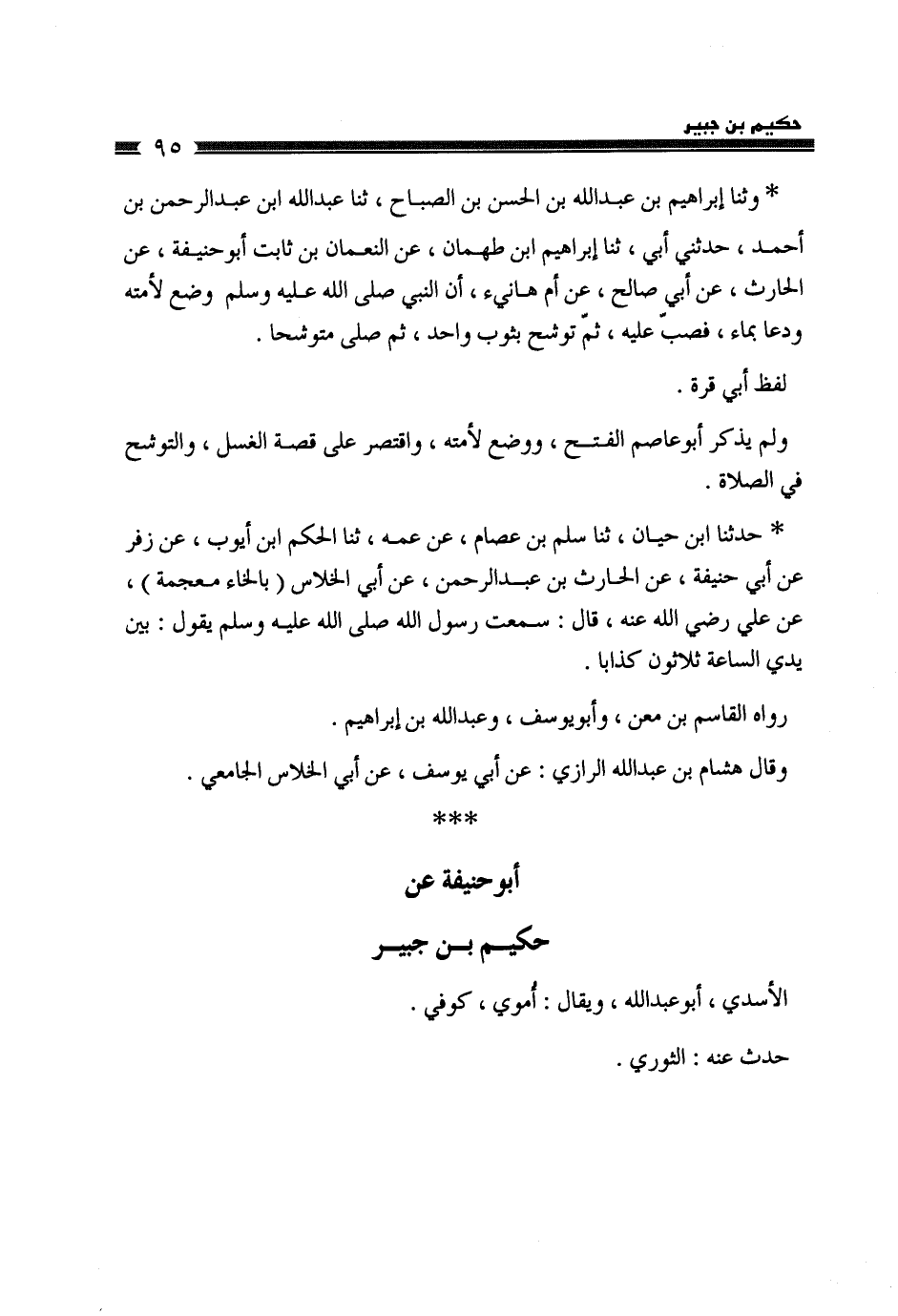 §أَبُو حَنِيفَةَ، عَنْ حَكِيمِ بْنِ جُبَيْرٍ الْأَسَدِيِّ أَبِي عَبْدِ اللَّهِ وَيُقَالُ: أُمَوِيٌّ كُوفِيٌّ حَدَّثَ عَنْهُ: الثَّوْرِيُّ