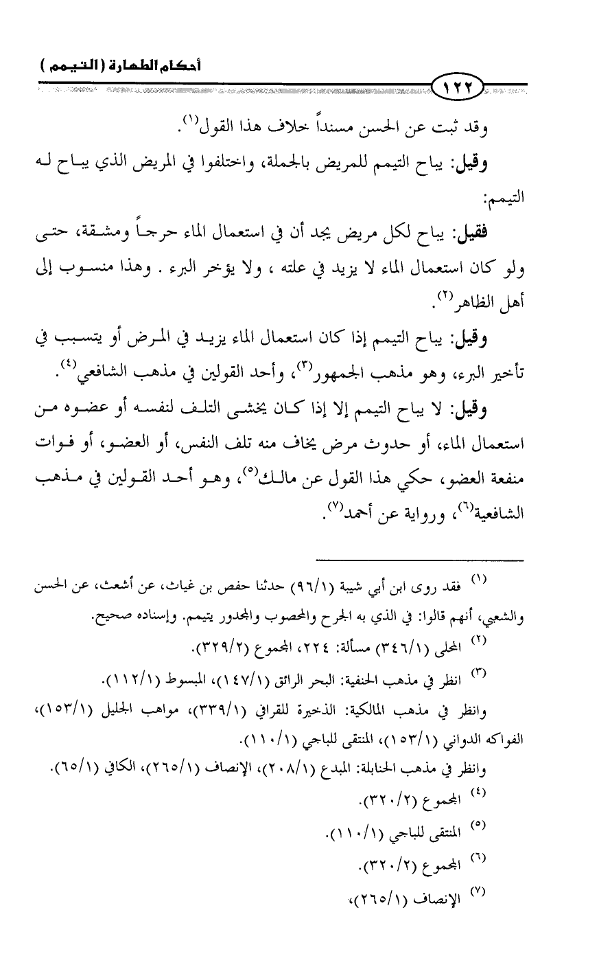 (¬١) فقد روى ابن أبي شيبة (١/ ٩٦) حدثنا حفص بن غياث، عن أشعث، عن الحسن والشعبي، أنهم قالوا: في الذي به الجرح والمحصوب والمجدور يتيمم. وإسناده صحيح.