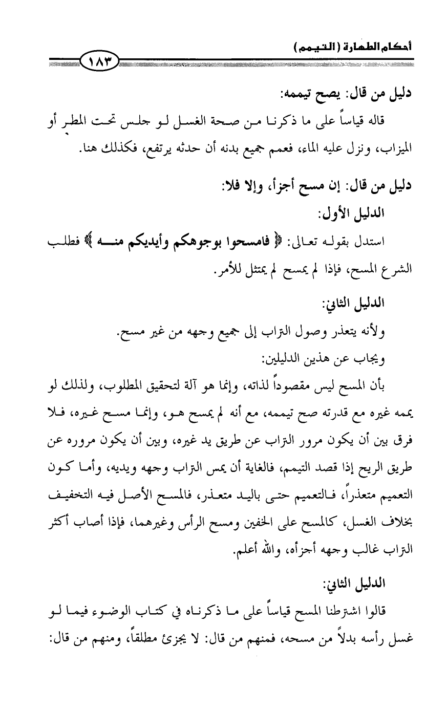 استدل بقوله تعالى: {فامسحوا بوجوهكم وأيديكم منه} فطلب الشرع المسح، فإذا لم يمسح لم يمتثل للأمر.