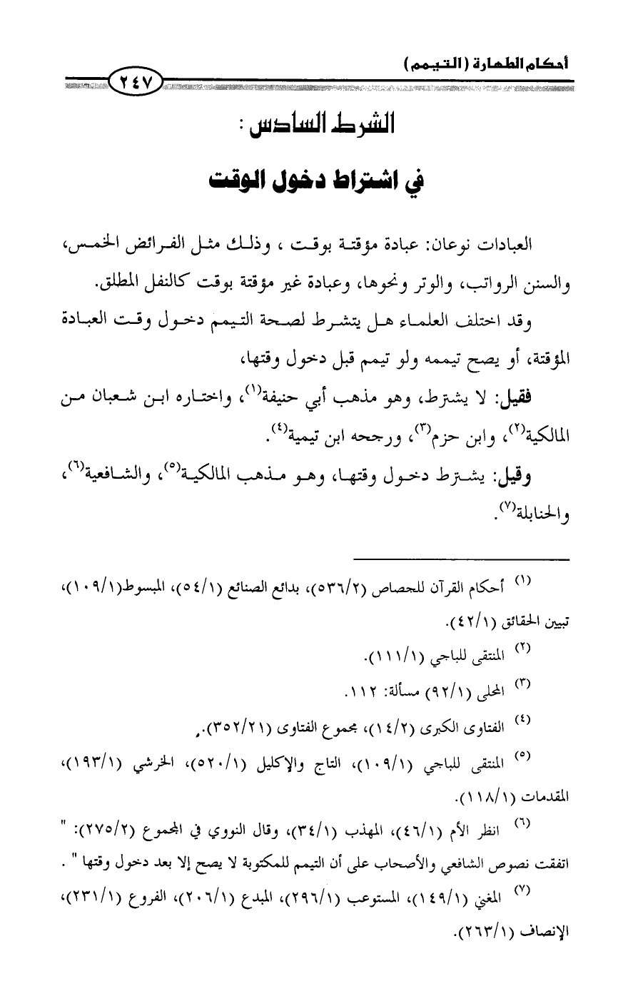 (¬٧) المغني (١/ ١٤٩)، المستوعب (١/ ٢٩٦)، المبدع (١/ ٢٠٦)، الفروع (١/ ٢٣١)، الإنصاف (١/ ٢٦٣).